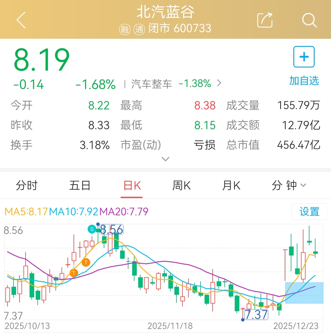 $北汽蓝谷(SH600733)$ 有点意思