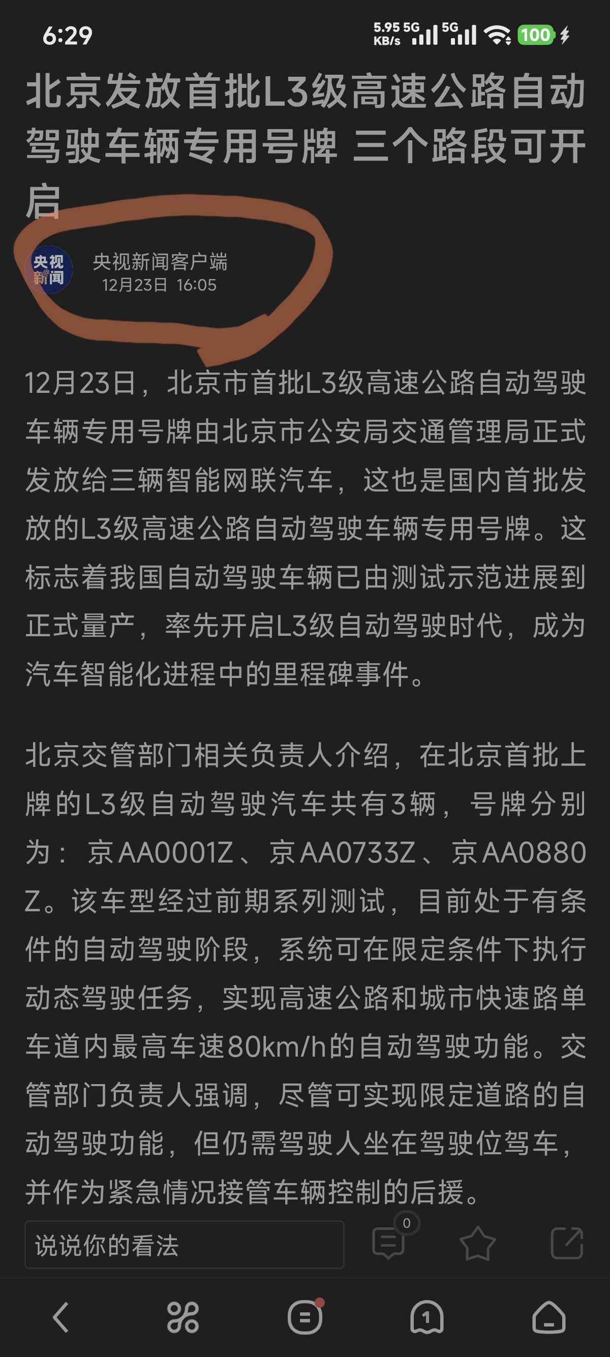 12月23日下午4点最新消息,北汽蓝谷三辆无人驾驶汽车,已上牌