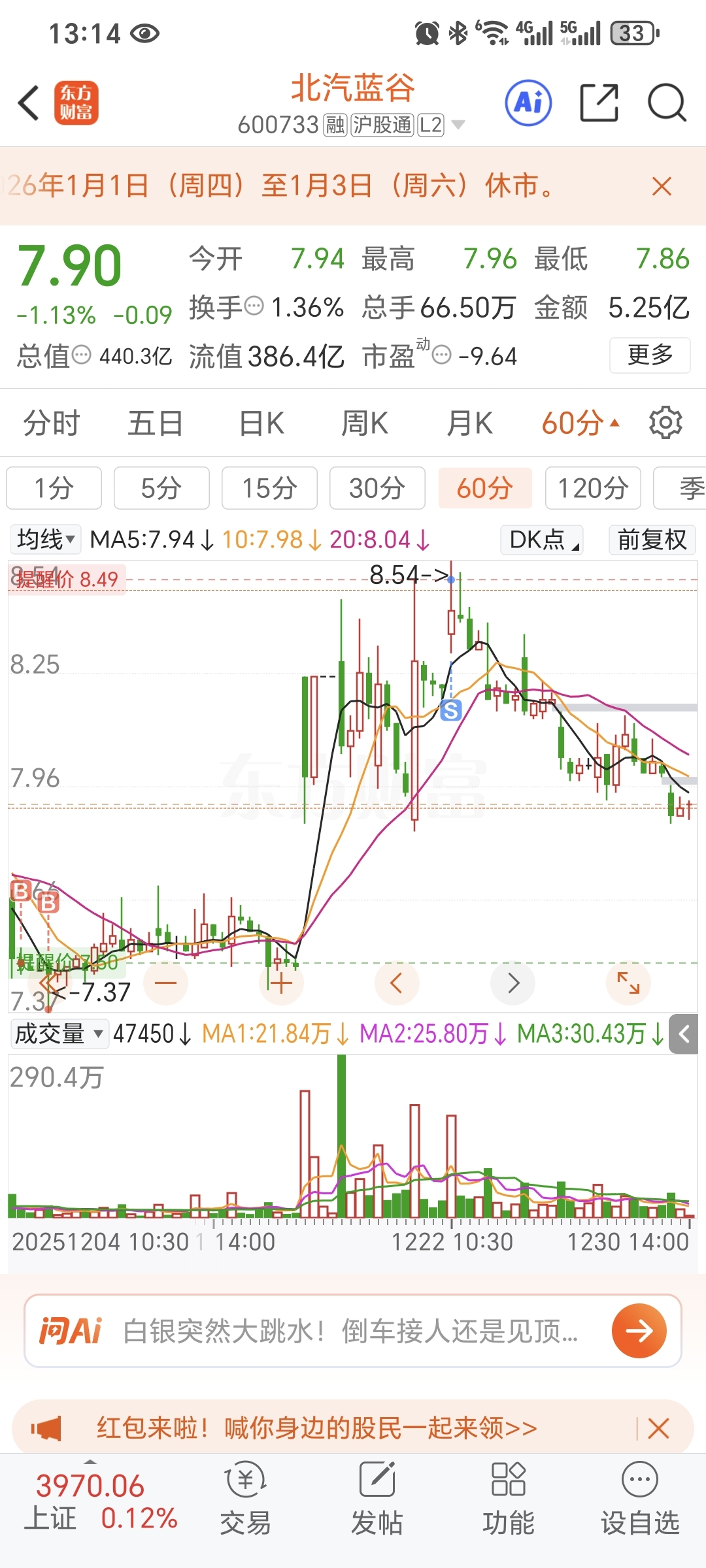 $北汽蓝谷(SH600733)$ 等买点出现