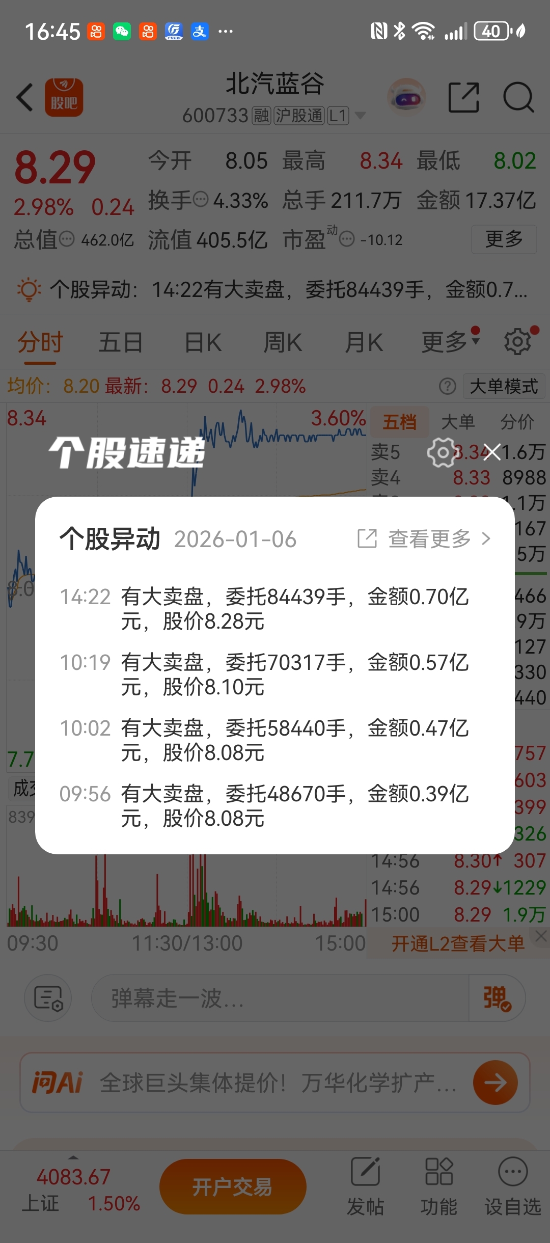$北汽蓝谷(SH600733)$ 这是啥情况 异动全是卖盘…