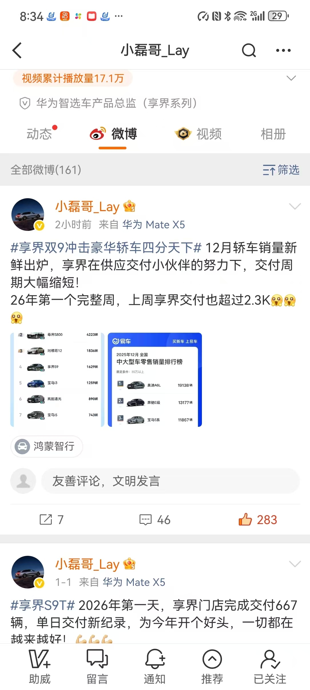 享界上周交付超2300量,一月继续破万,股价直上云霄