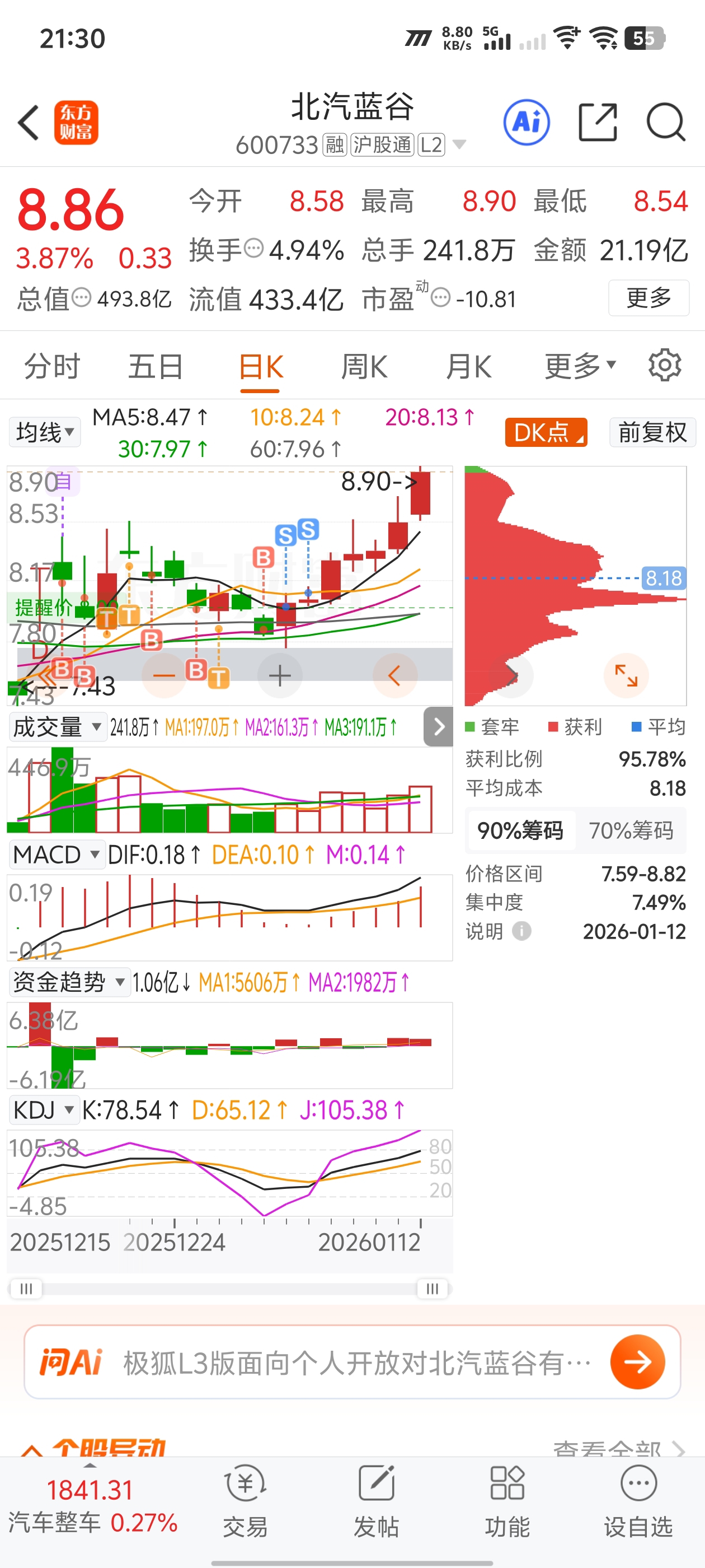 还涨啊?我买的众泰,长安,海马,北汽,唯独北汽卖了开始大涨,其他都没涨