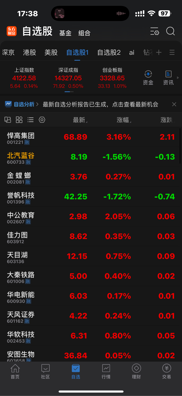 自选里除了个次新股都是红的!没有哪个像你这样。后悔15.8卖出中航重机买了你,中