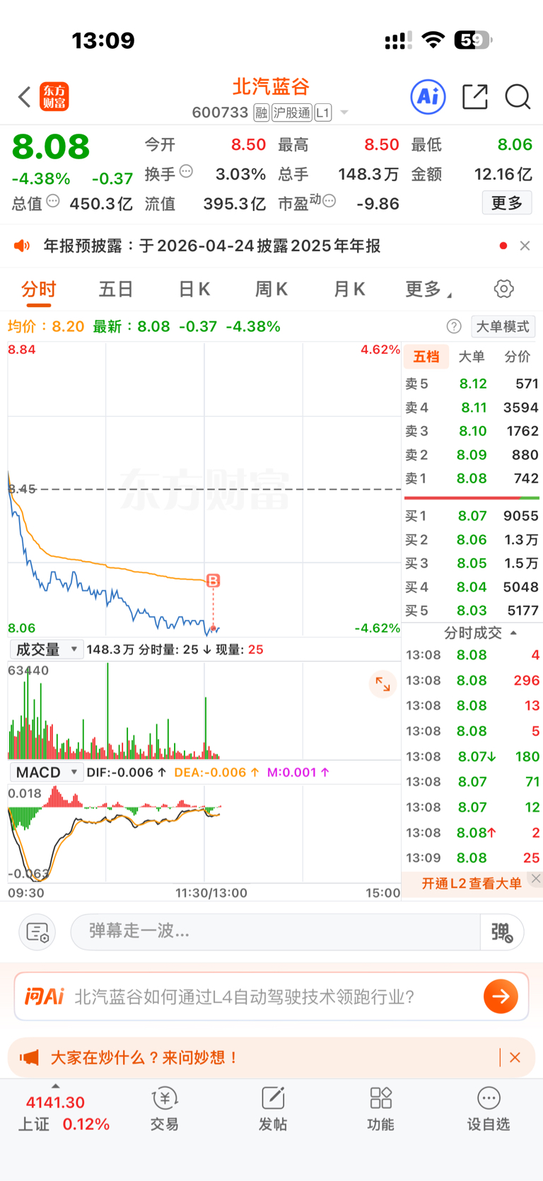 $北汽蓝谷(SH600733)$ 我是新来的,主力多照顾点哈