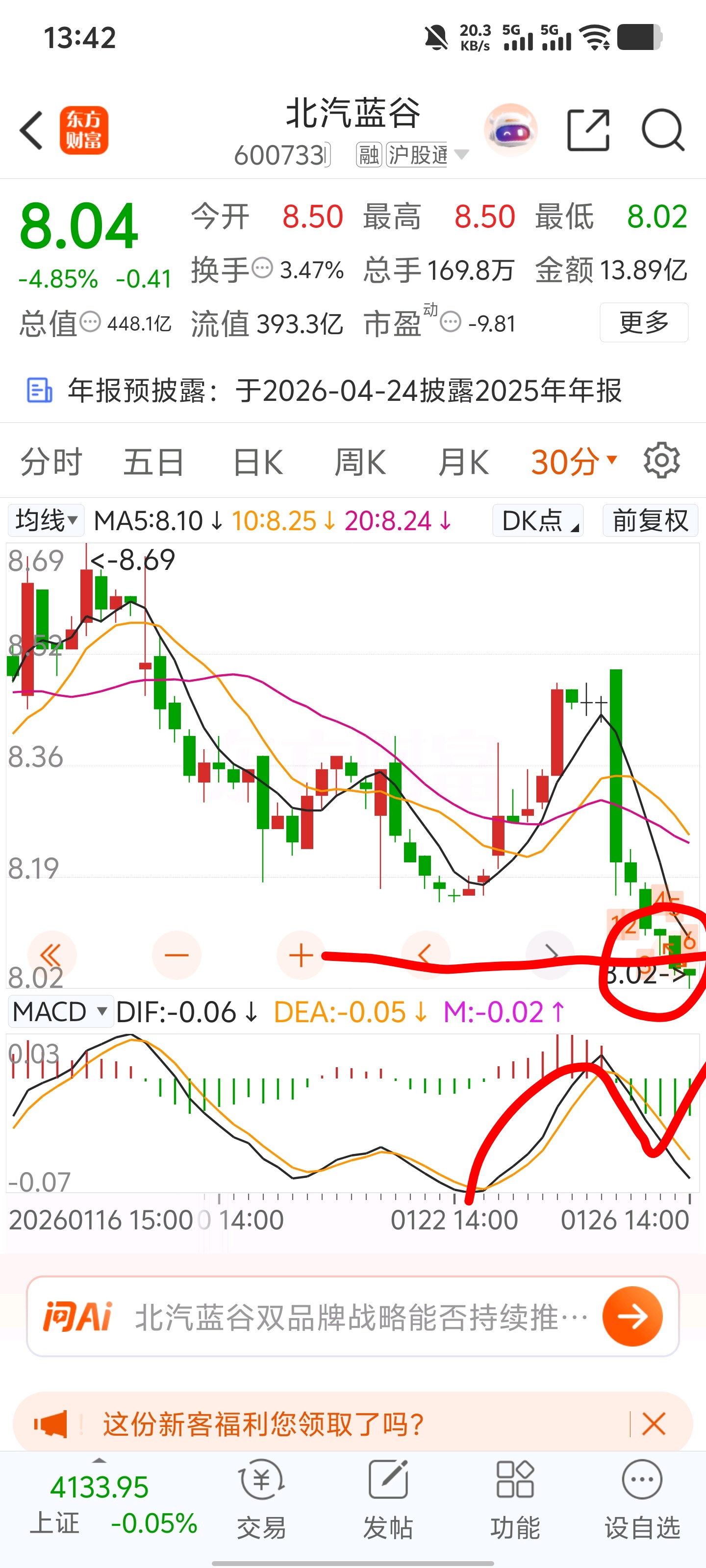 $北汽蓝谷(SH600733)$ i底背离低点有了
