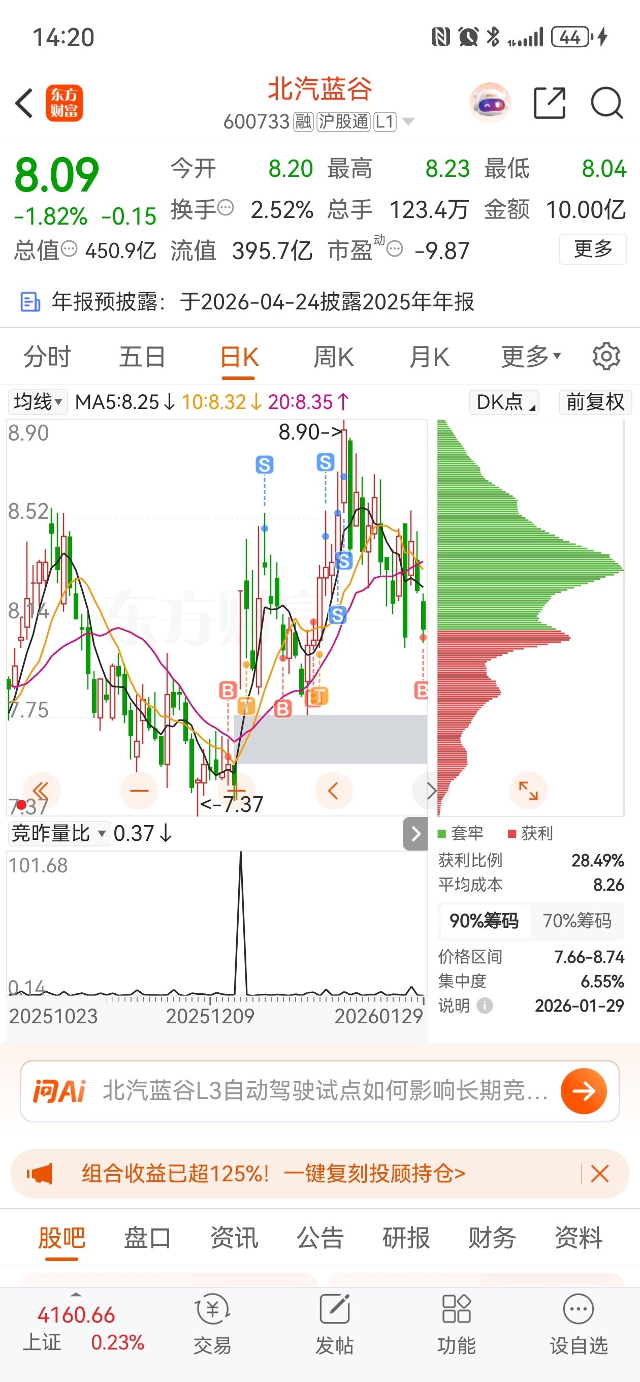 $北汽蓝谷(SH600733)$ 这是我的运气股,跑出去一个多月现在又回来了