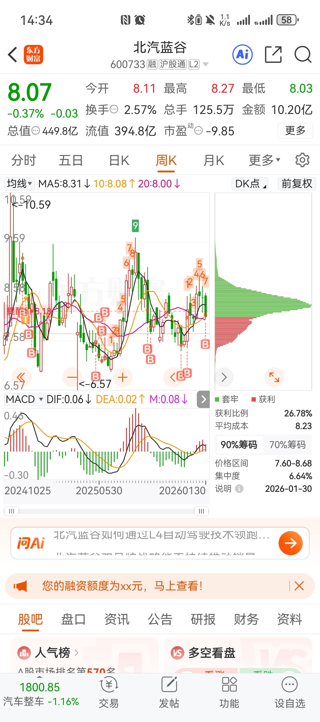 $北汽蓝谷(SH600733)$ 实打实拿了一年多了,基本上我没做过T,全是B,这是我做的最恶心的一个股了,在这里给我的感觉就是里面的主力好像有源源不断的筹码一样,就压着不让涨,好像涨了没有一点好处一样。我不太理解这样做庄是什么样的想法。