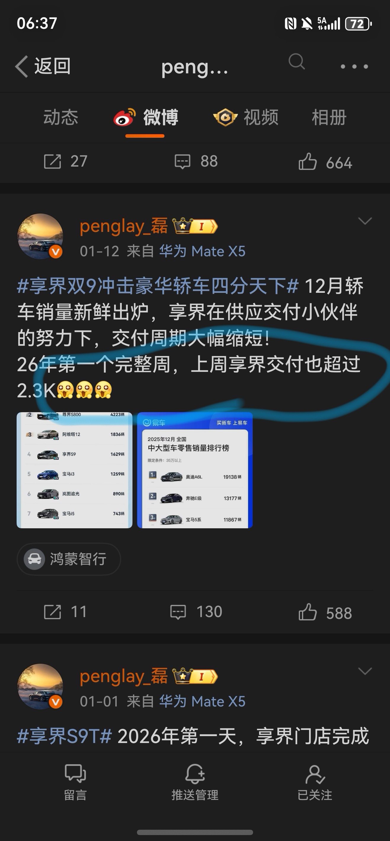 $北汽蓝谷(SH600733)$ 元月初,享界总监小磊哥说享界26年第一周交付2300,现在北汽蓝谷第一月销量8073,无法理解。想来想去应该是因为今年补贴退坡,客户赶在去年年底前定车预交款但没拿到车,北汽蓝谷今年元月的交车实际是算到了去年12月份或11月份的销量。所以去年四季度北汽蓝谷的销量有一定水分。北