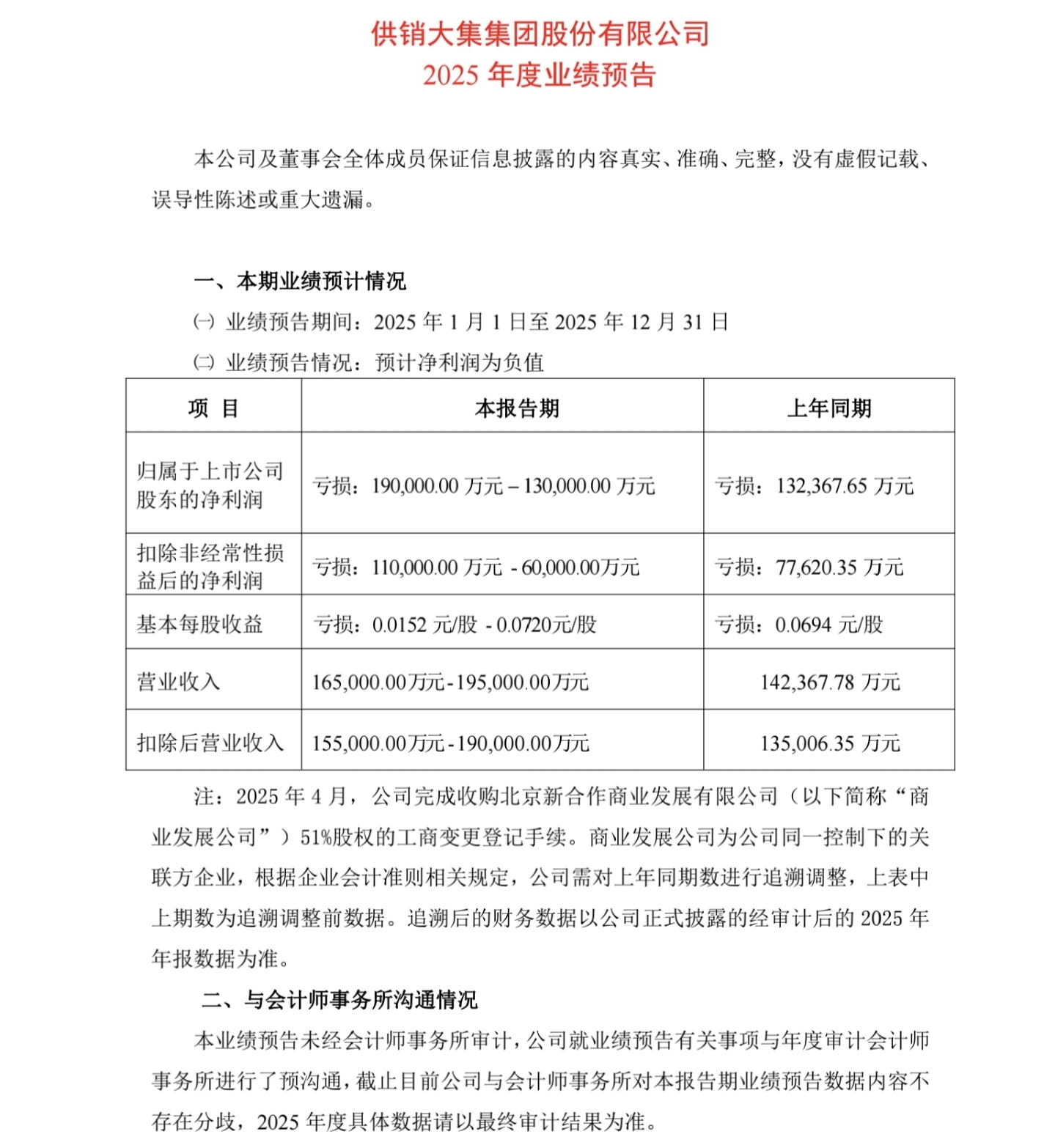 供销大集在公告中也表示,本次收购有利于供销大集进一步响应国家城乡融合发展政策,通过在农产品贸易业务领域的资源整合,推动农产品上行、工业品下行,在实现现代流通体系再造、繁荣城乡经济、服务保障民生、助力乡村振兴中彰显社会责任担当。