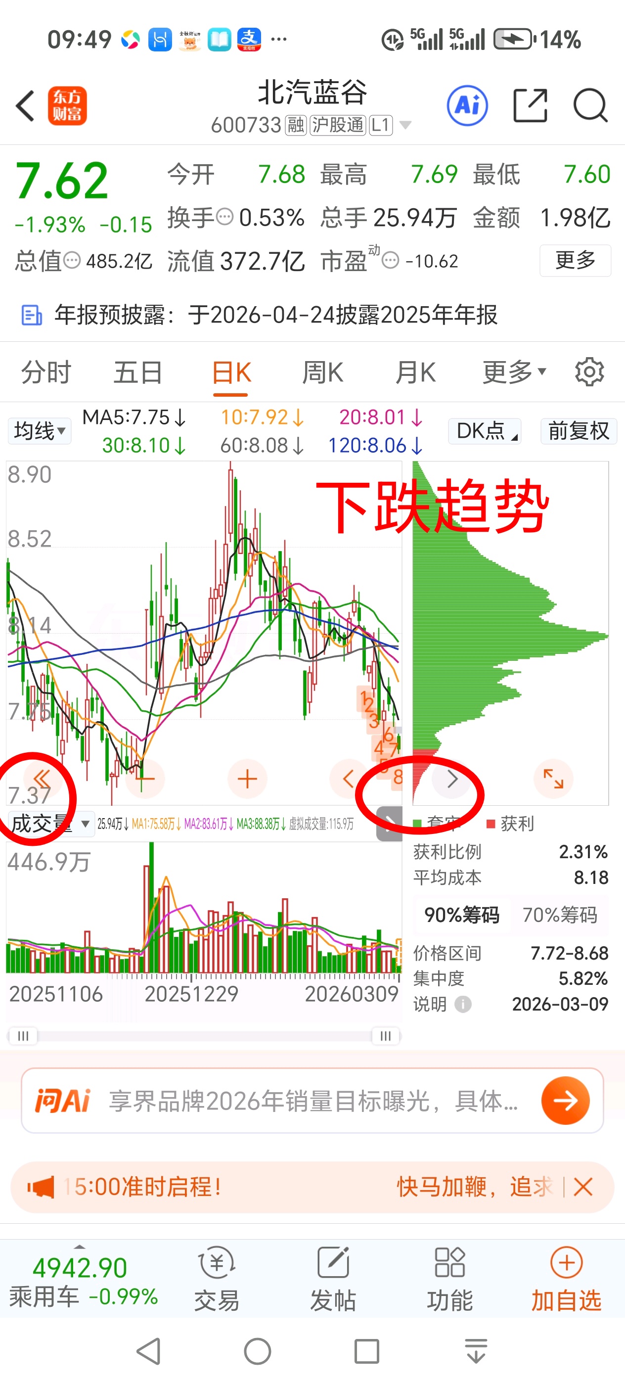 下跌趋势,现在只看不买。