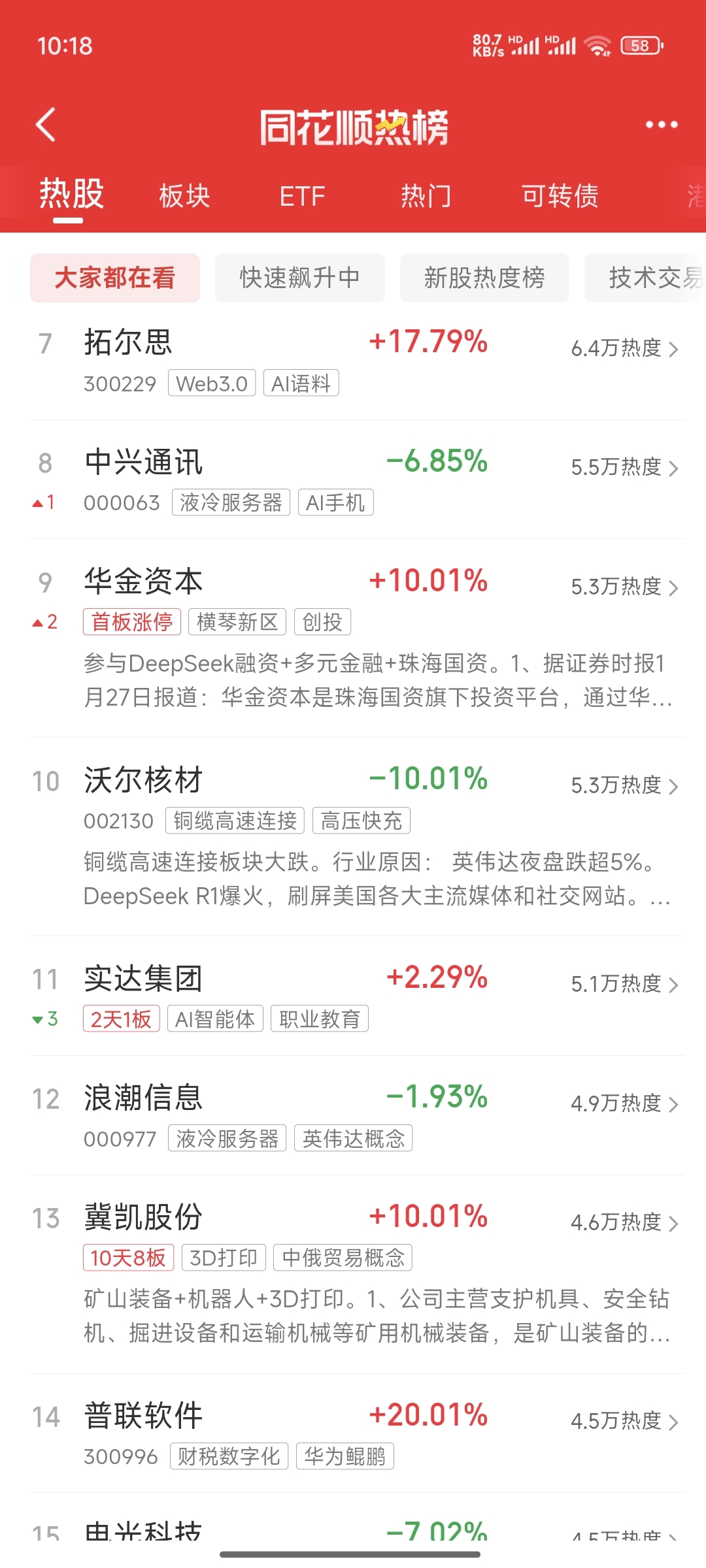 同花顺热度榜11