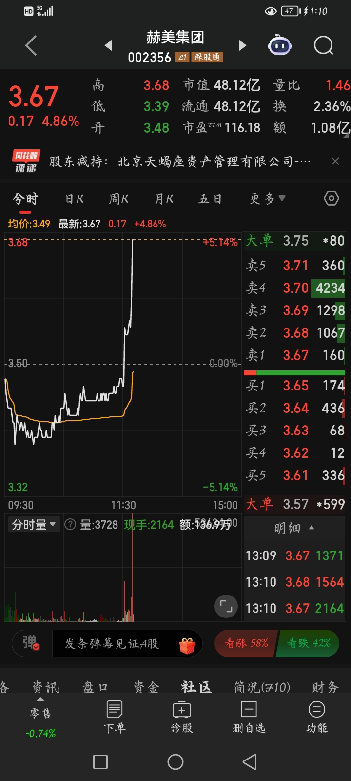 $实达集团(SH600734)$ 靠,早上换票二选一,选了这货。49永远买不完。感觉错过了一个亿