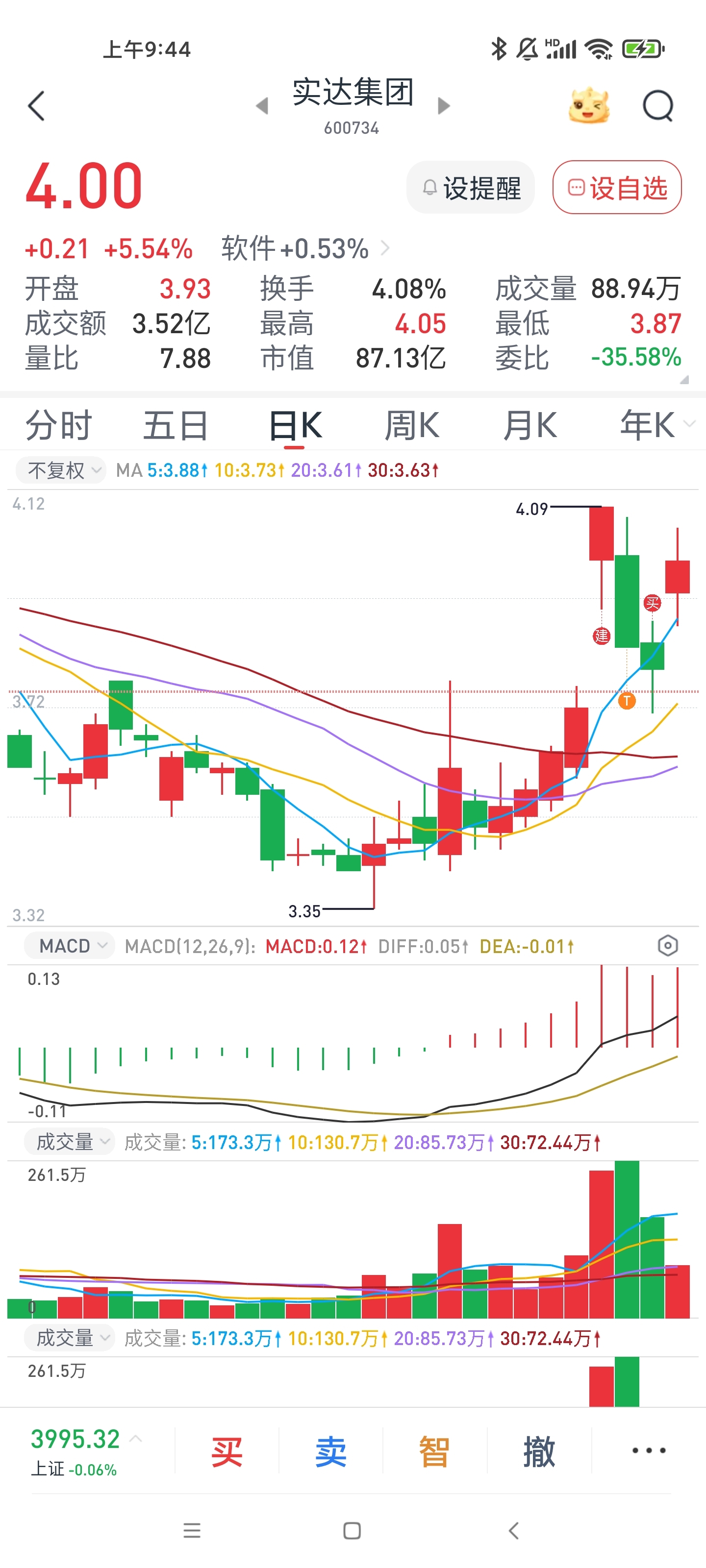 $实达集团(SH600734)$ 完美做了个T,成本3.7了,正常我是不去贪这种便宜做高抛低吸的,实在是没办法怕了他们这些没格局的