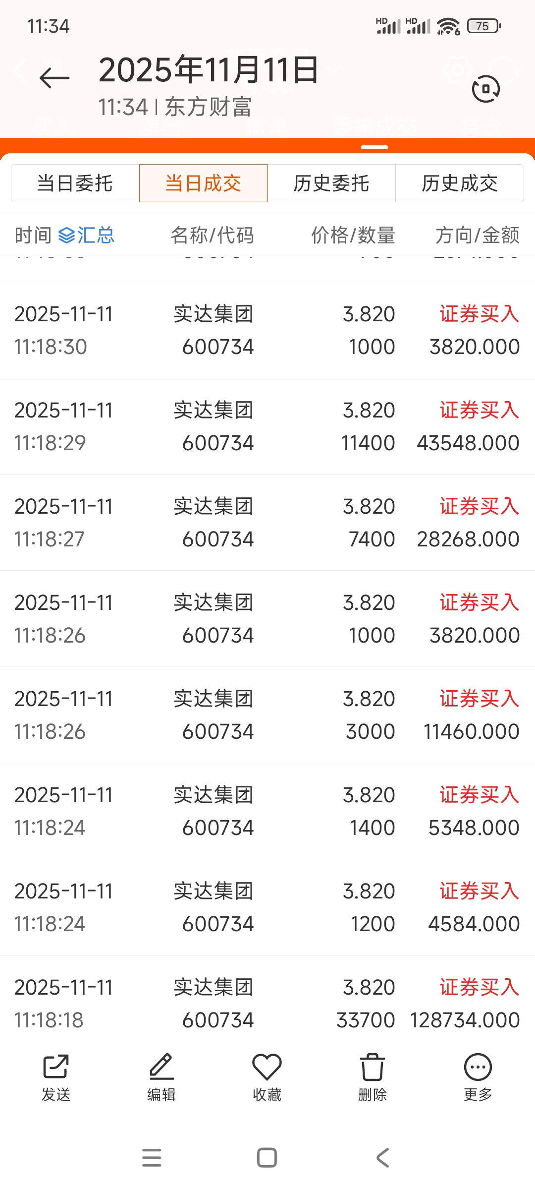$实达集团(SH600734)$ 富贵险中求昨天卖了一部分,今天全部回补