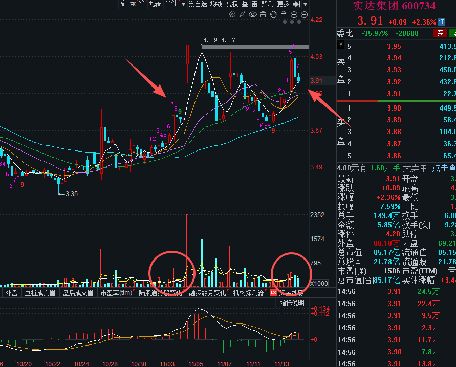这是60分钟的图,2个位置相似度非常高,下周一不能低开破3.90,平开或者高开且放量果断追!