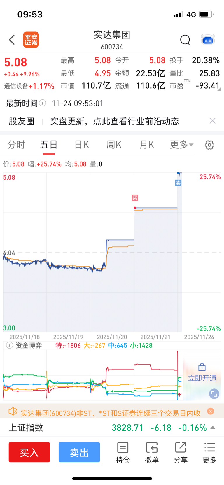 $实达集团(SH600734)$ 三百万封单秒砸开,给我吓跑了