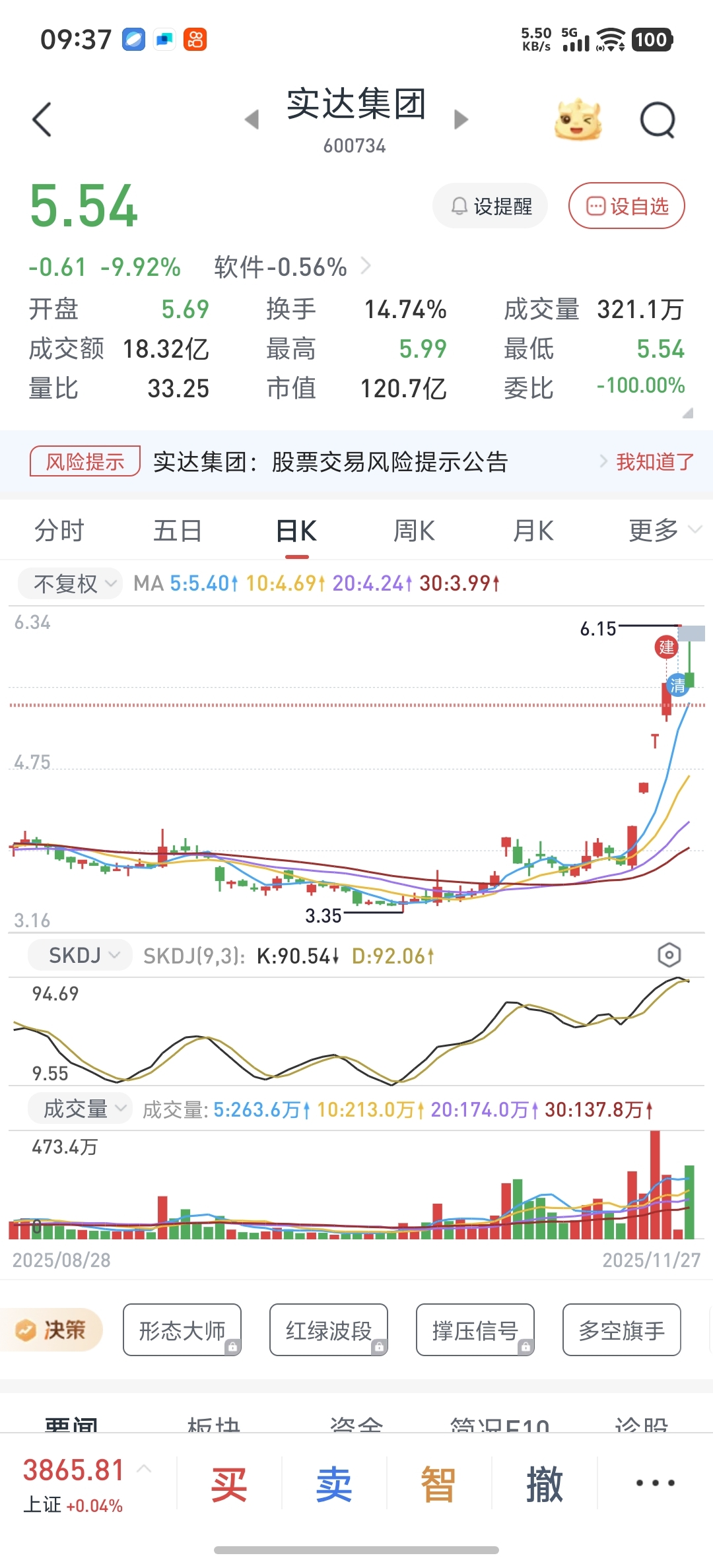 $实达集团(SH600734)$ 有人笑我太痴癫,我笑他人看不穿,李嘉诚先生说的一句话非常的有道理,不挣最后一个铜板
