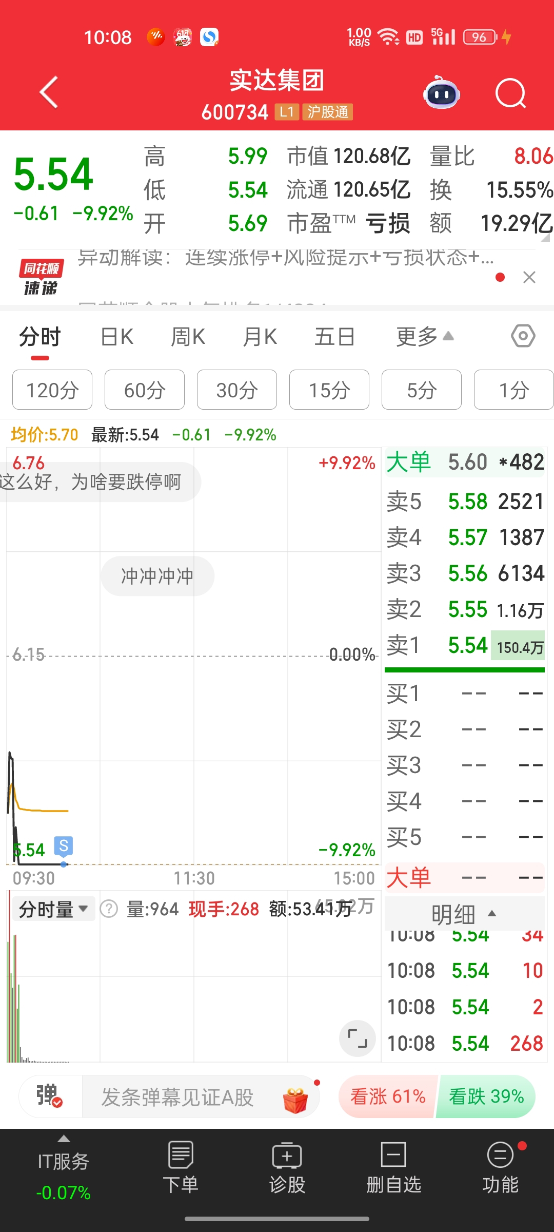 兄弟们我格局到跌停,刚跑出来,封单太大了,过段时间再买,行情退潮了