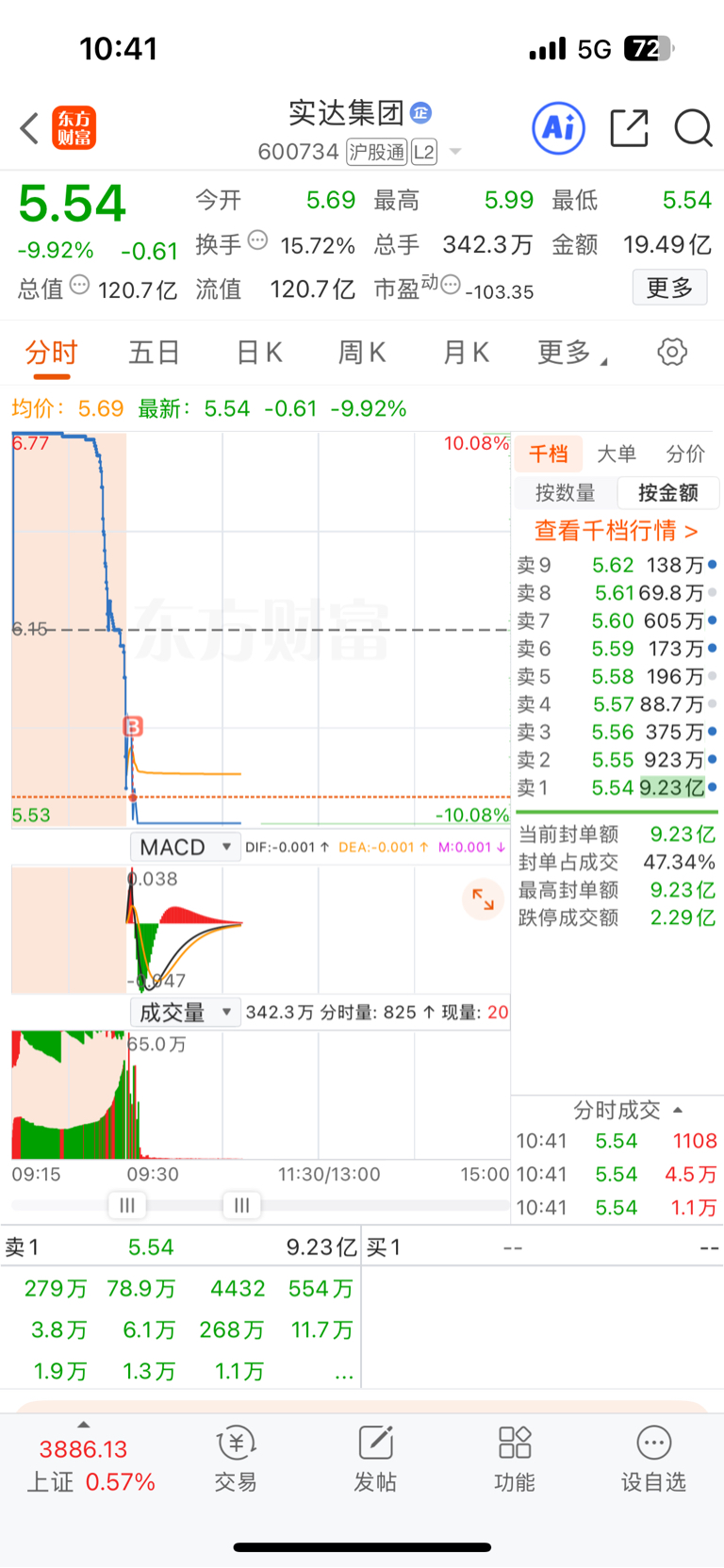 $实达集团(SH600734)$ 开盘5分钟就下班了