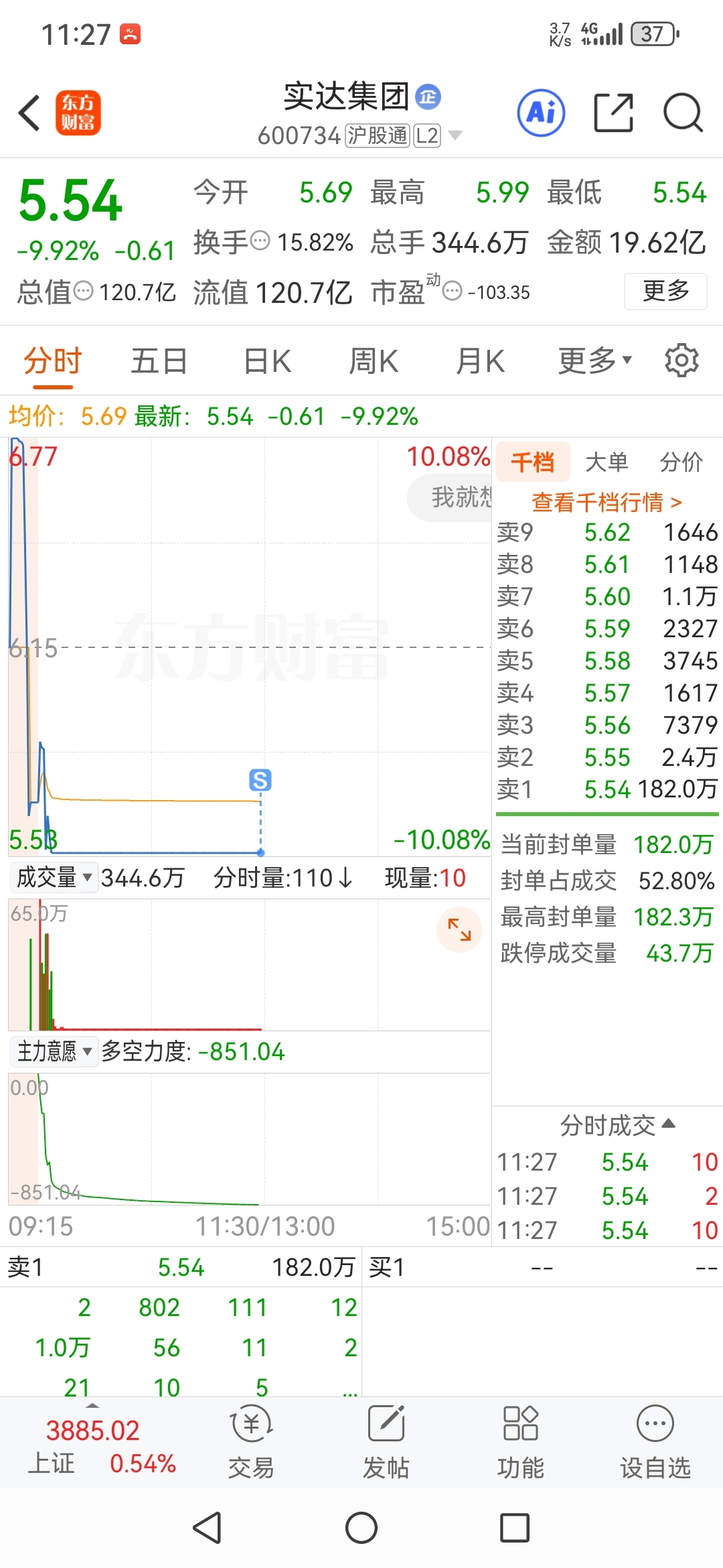 $实达集团(SH600734)$ 老天爷差点没跑出去