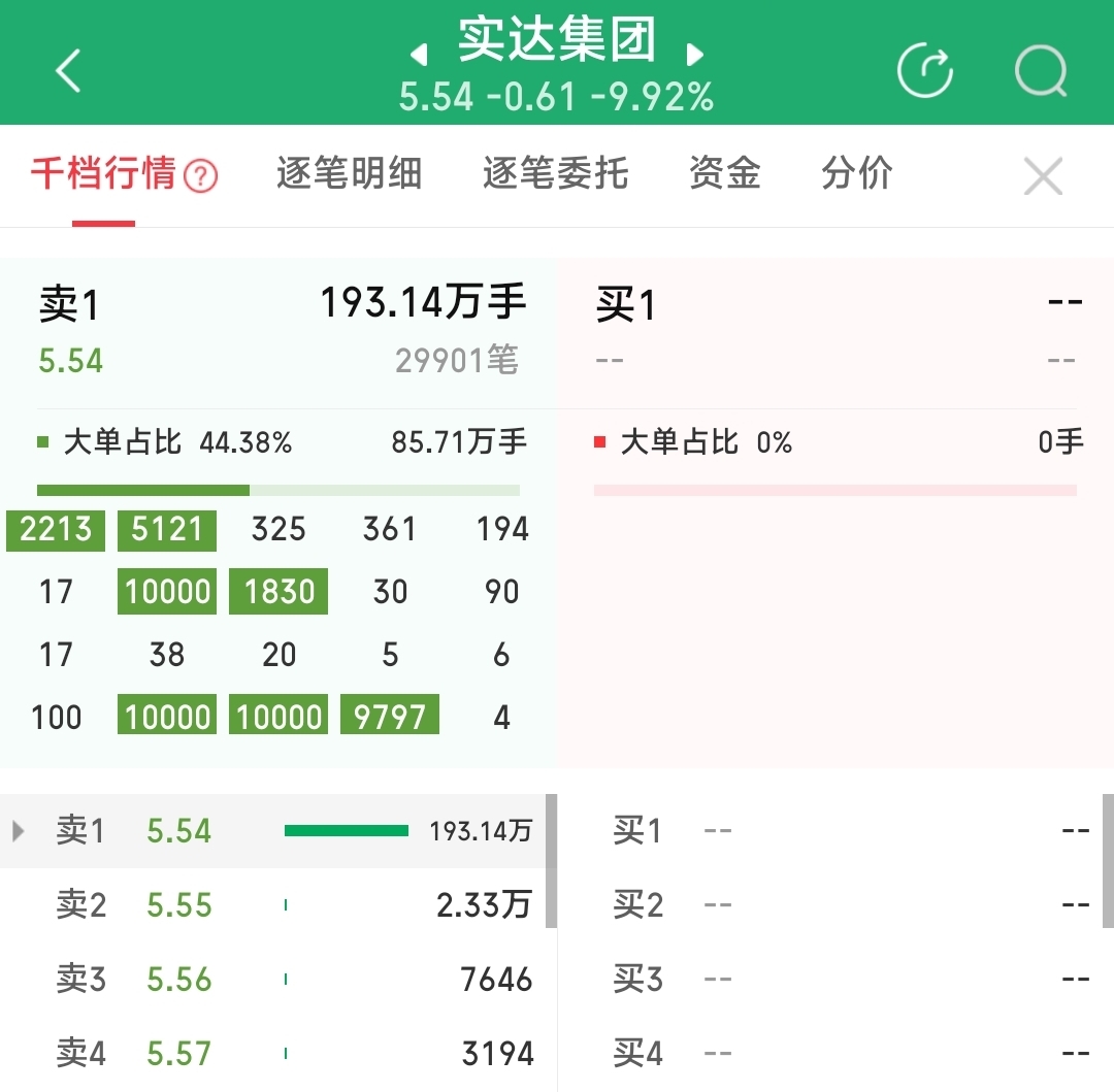 $实达集团(SH600734)$ 很多万手大单,等着散户朋友们去解救!