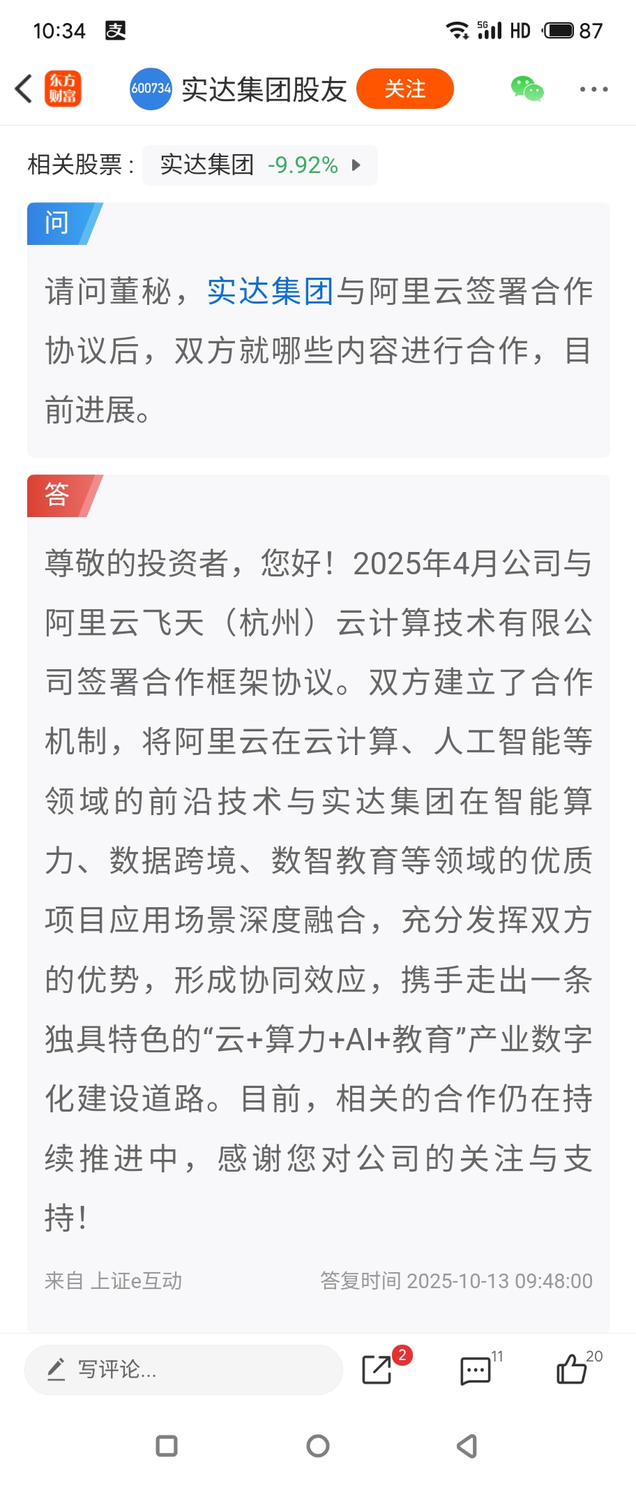 $实达集团(SH600734)$ 一起投诉董秘说假话