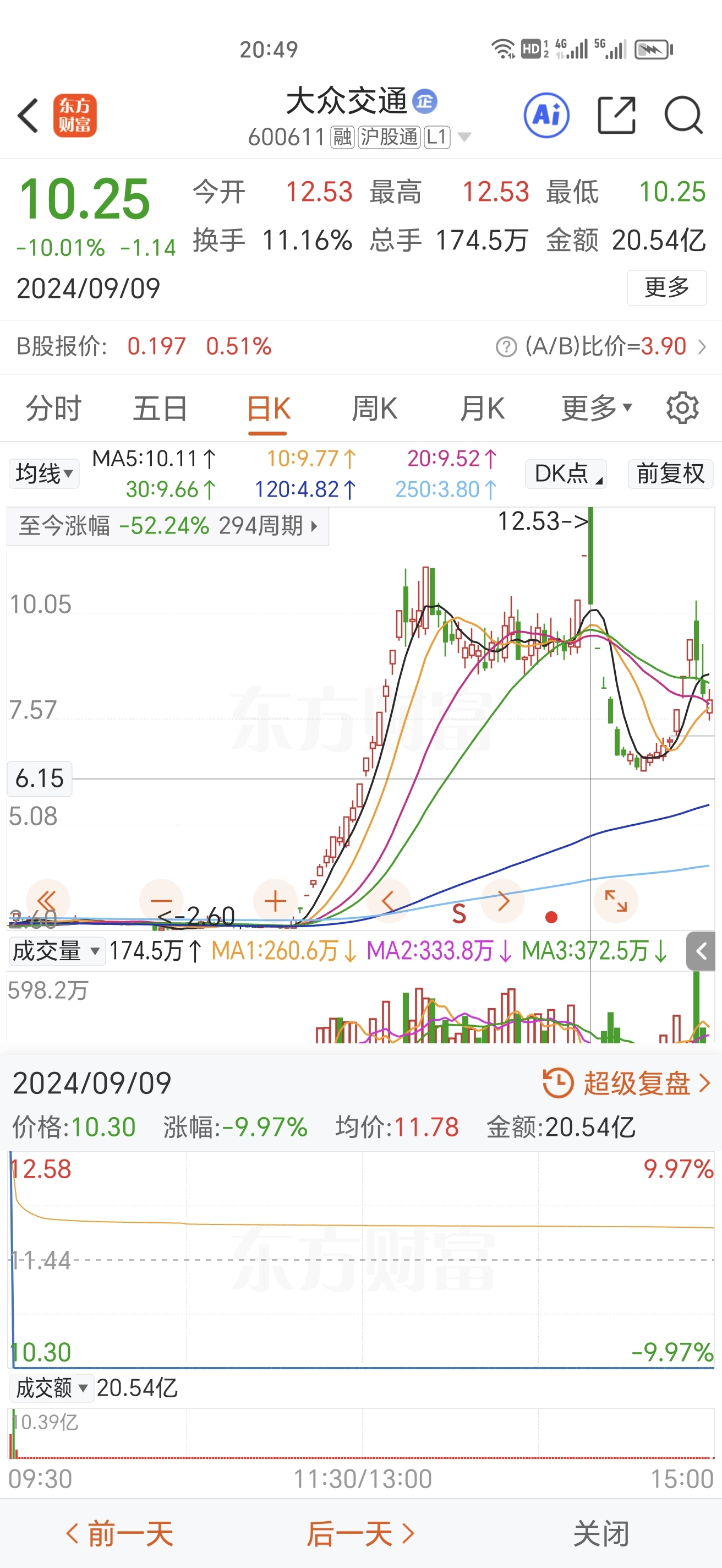 大众交通第一个跌停板16亿封单(共5个跌停),按比例,实达3个跌停,下周三上午可