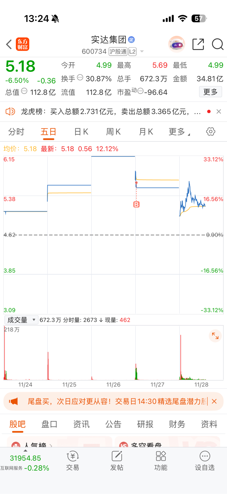$实达集团(SH600734)$ 我在里面红我也没走没t如果今天跌收的周一才开始有机会 别喷我