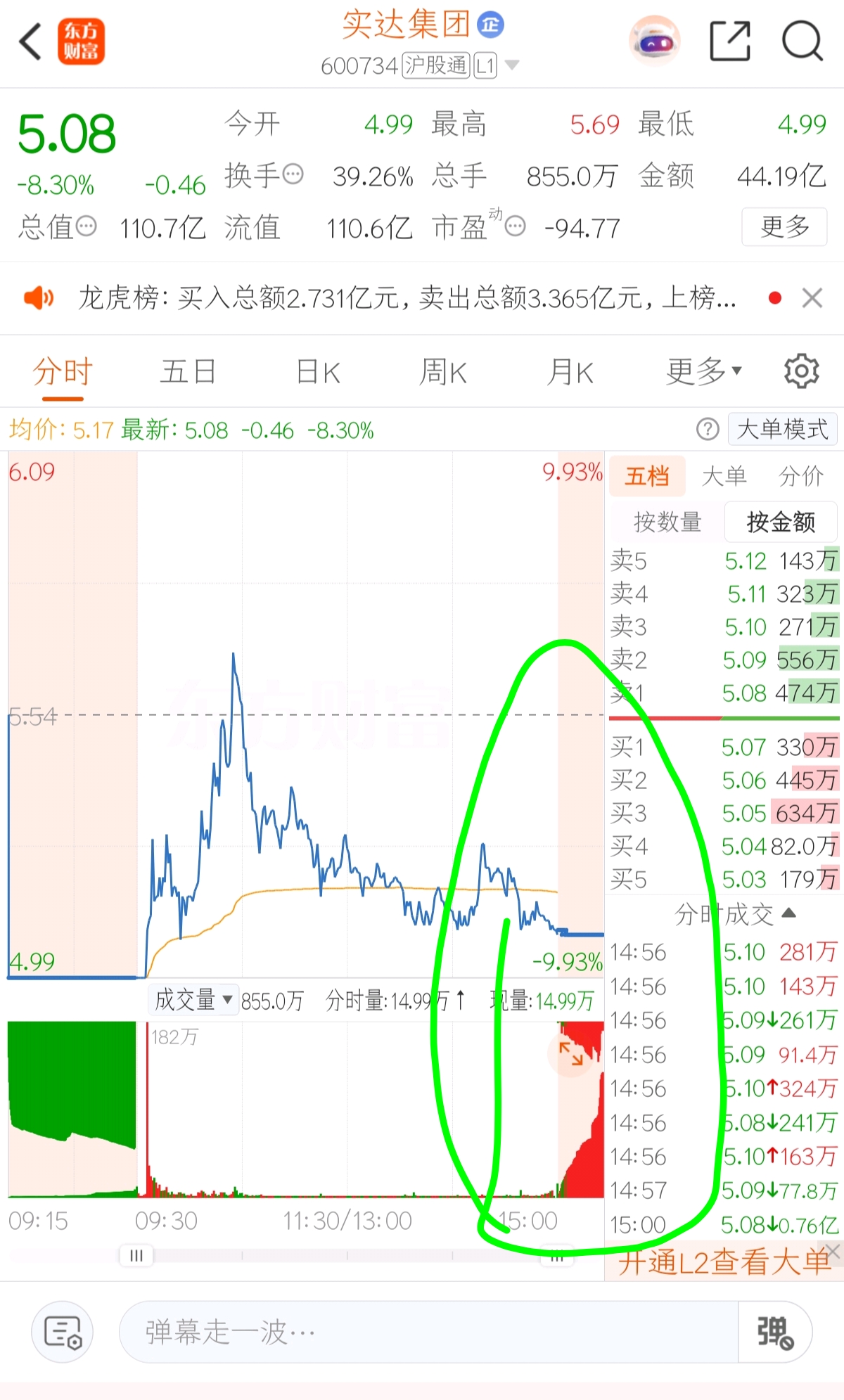 $实达集团(SH600734)$ 尾盘什么情况有人接嘛