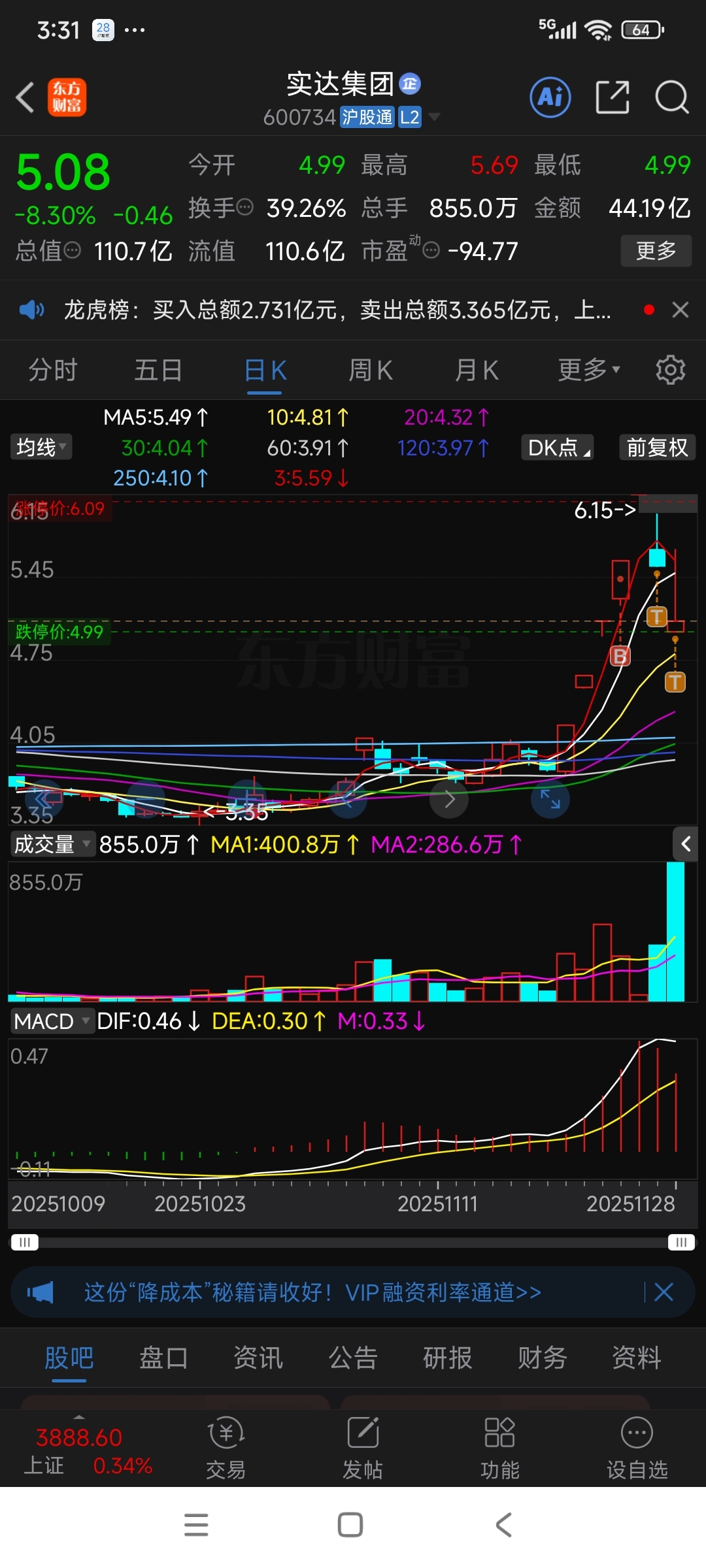 $实达集团(SH600734)$ 我特别羡慕6.15跑路的,为什么是羡慕,不是佩服呢?