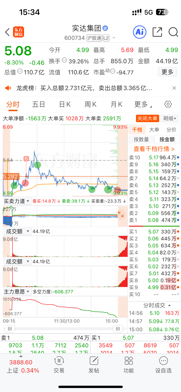 $实达集团(SH600734)$ 有今天进的小小散吗?今天进去以为要涨停了,结果收盘快跌停,真是事实无常啊,希望下个月有一个好的结果