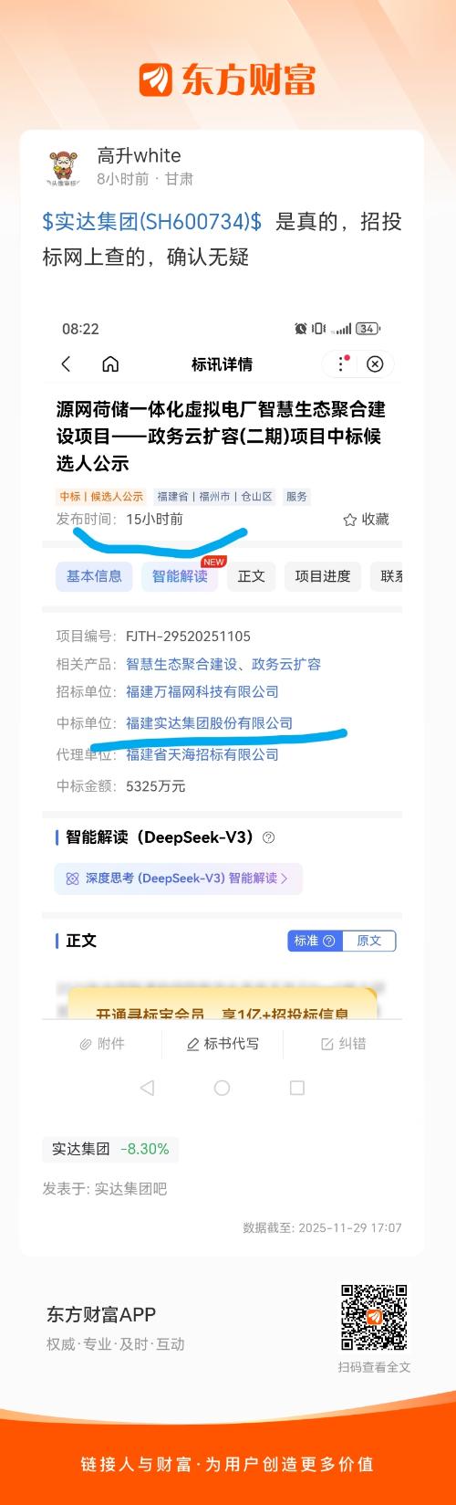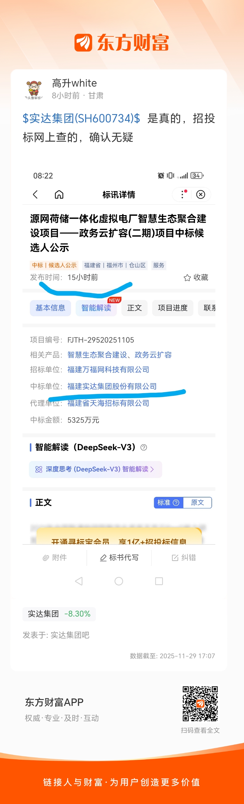 看到好多人说5000多万标就这这点钱,你们都是亿万富翁吗?5000多万的项目你们都看不上哦?厉害!但是对于前三季营收度都只有1.3亿元的实达集团来说,近6000万项目已经可以占到年营收的30%了!这对于主营年收要达到3亿才不会st的主板公司来说就是大利好!$实达集团(SH600734)$$蓝色光标(SZ300058)$
