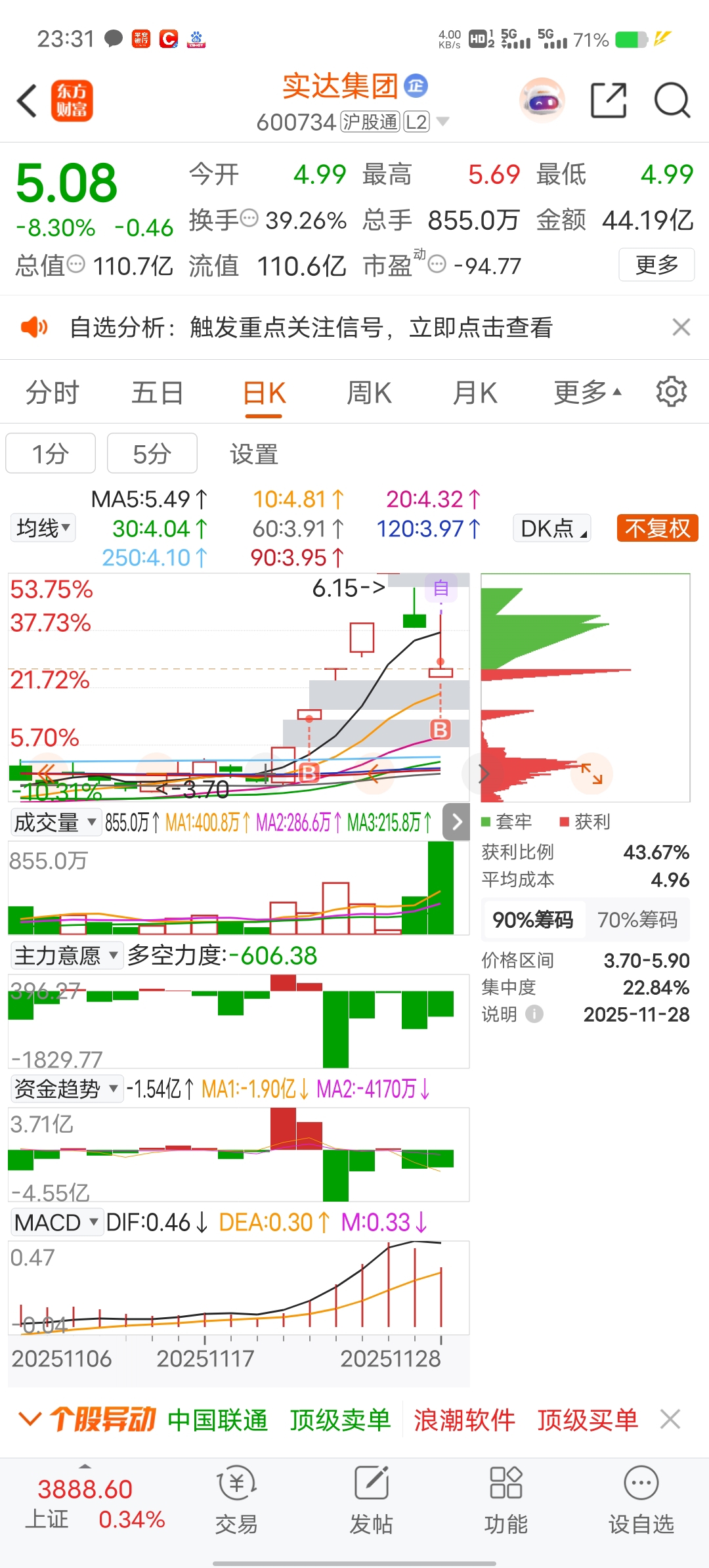 $实达集团(SH600734)$ 主力希望你跌停,你越跌我越加仓,今晚还挂了涨停单进。