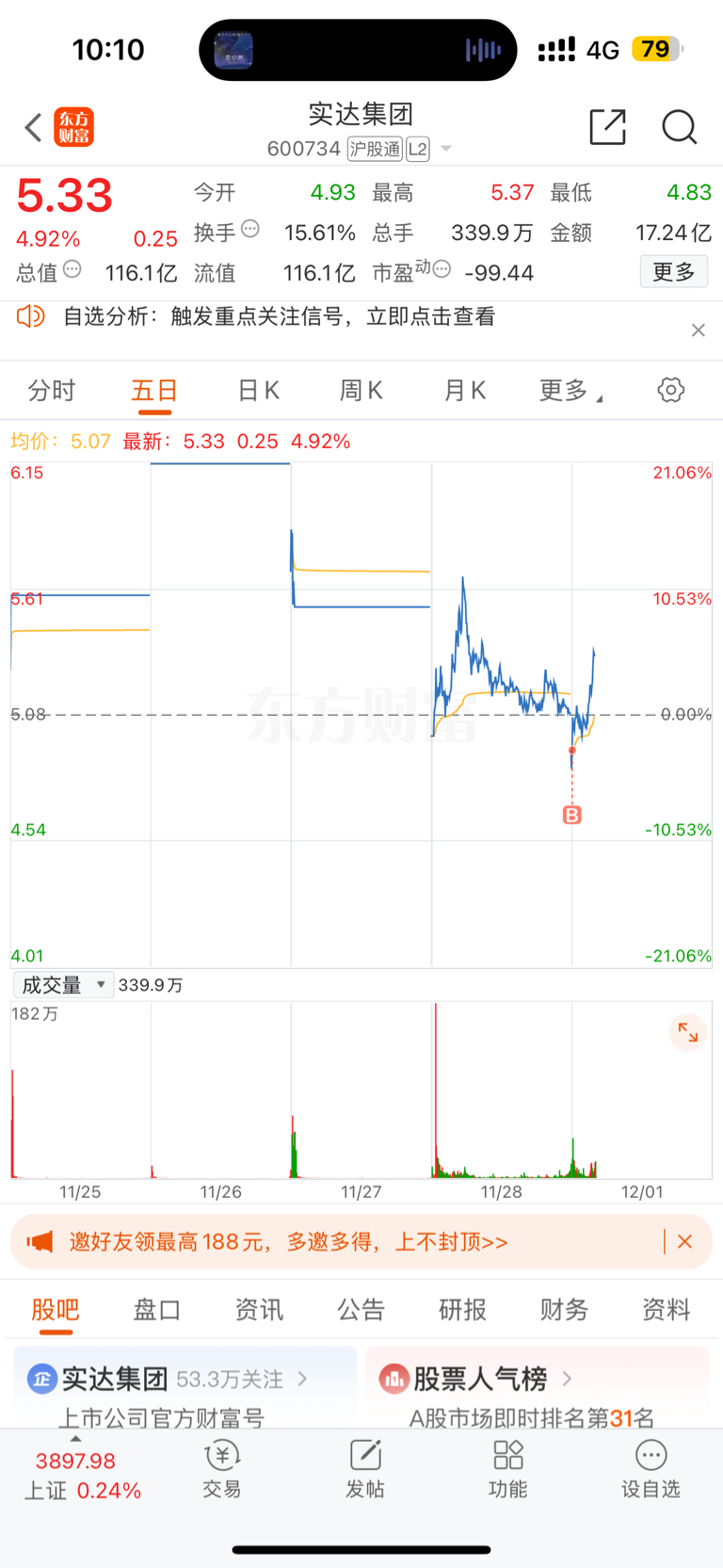 $实达集团(SH600734)$ 不会要让我赚钱了吧