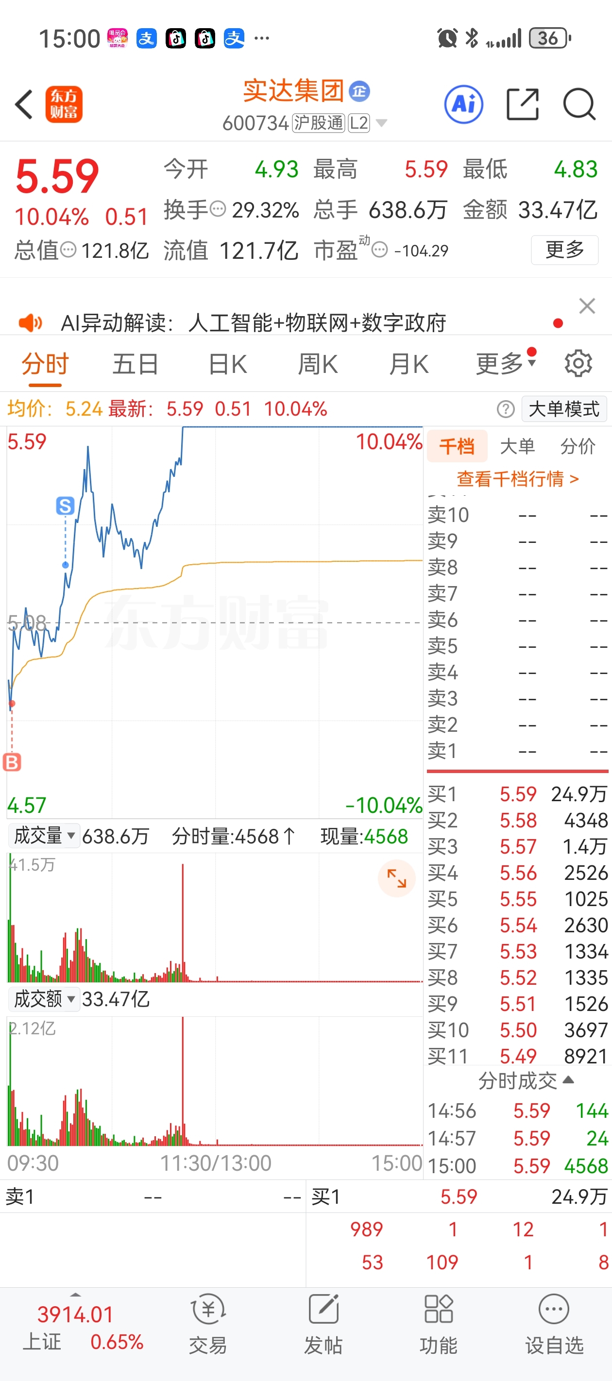 $实达集团(SH600734)$ 卖早了,盘中没想到会涨停,还是大资金的力量强大。