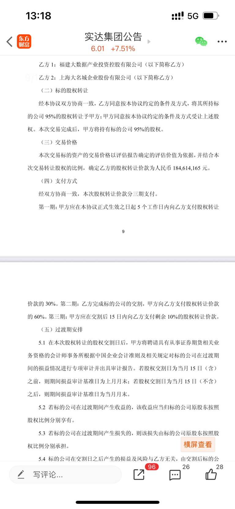 $实达集团(SH600734)$ 根据公开的公告中,收购算力公司。5日内需要支付1.85亿的30%款,就是5400万左右。刚好用中标的算力云项目5325万去银行抵押,完美诠释。10内,应该完成任务!昨天刚完成中标公示!