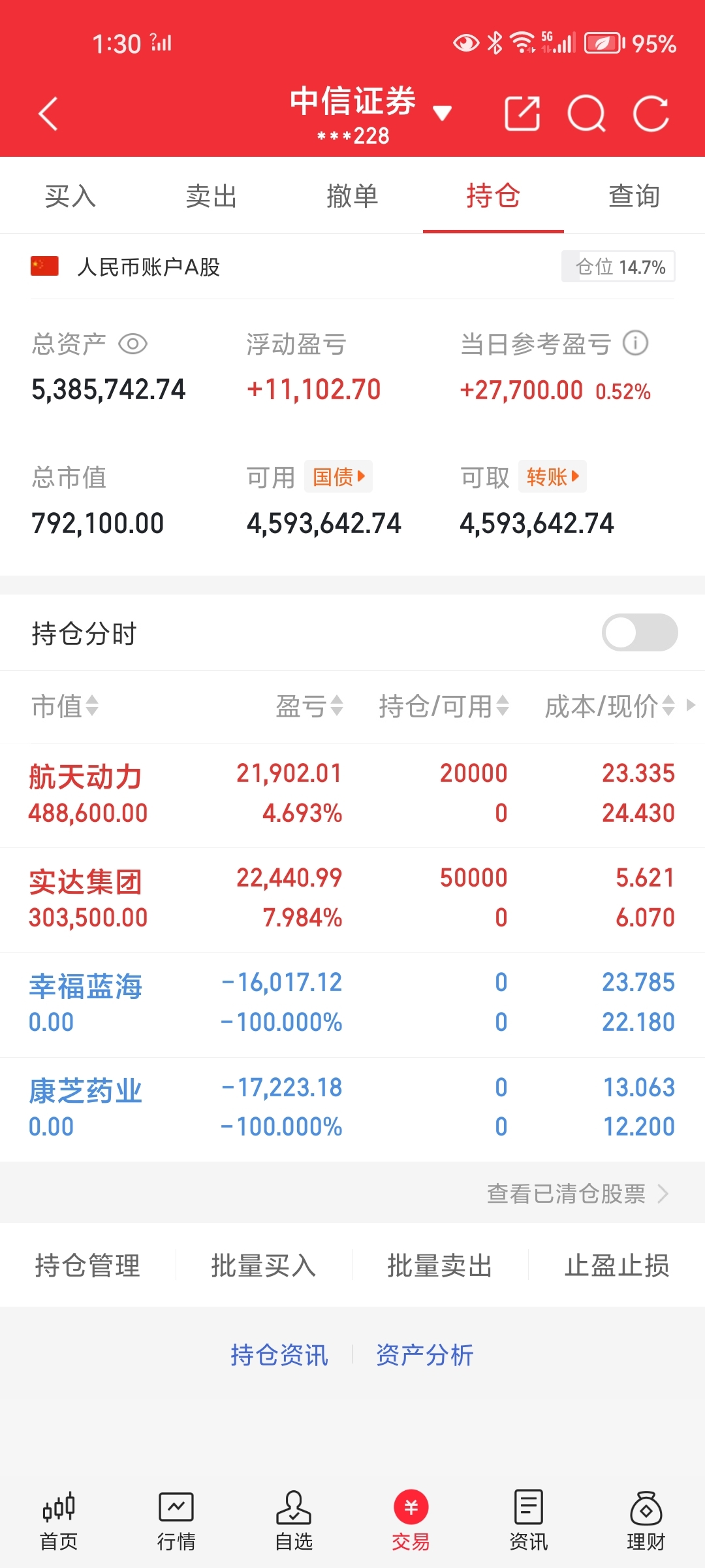 今日买进: $实达集团(SH600734)$ $航天动力(SH600343)$