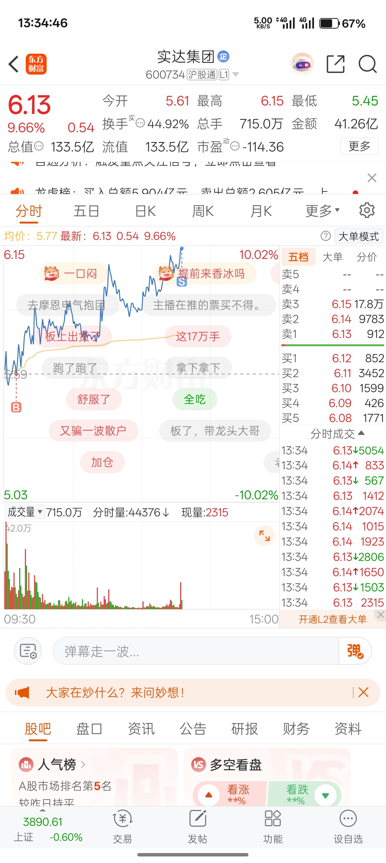 $实达集团(SH600734)$ 忘记撤单了,居然成交了