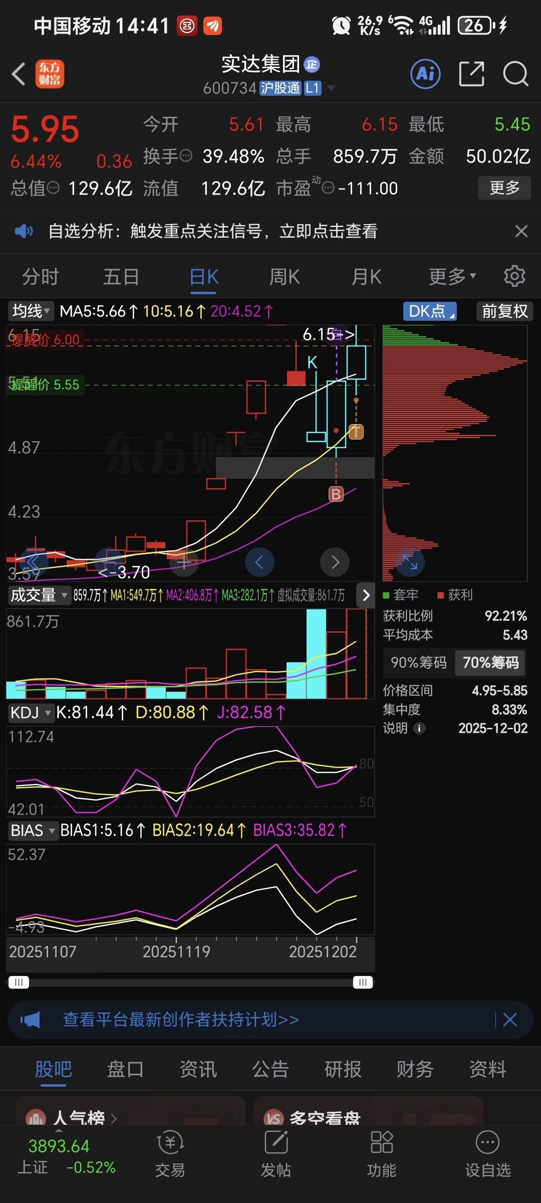 $实达集团(SH600734)$ T,全仓卖,买一半 就算都不会亏。