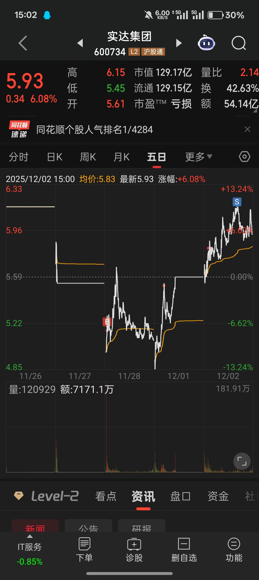 $实达集团(SH600734)$ 三天20个点,明天红开把今天进的也清仓