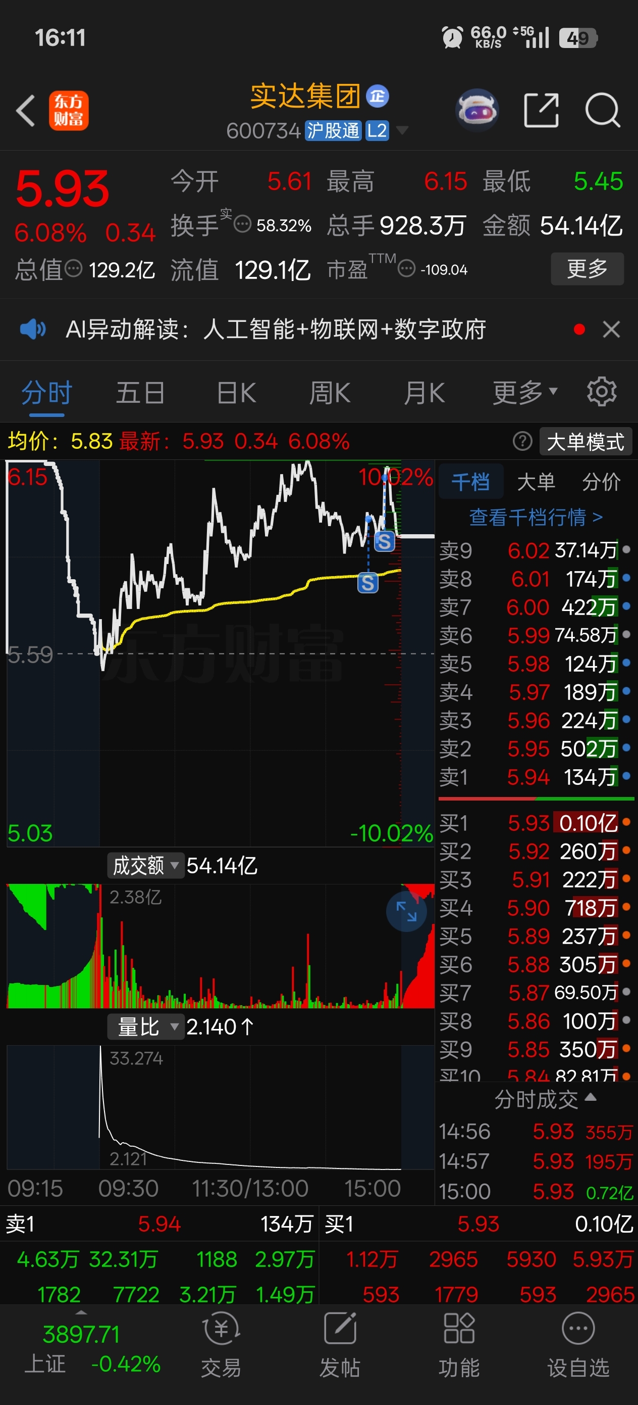 $实达集团(SH600734)$ 明天低开再补回来咯