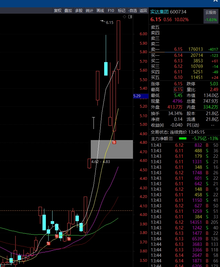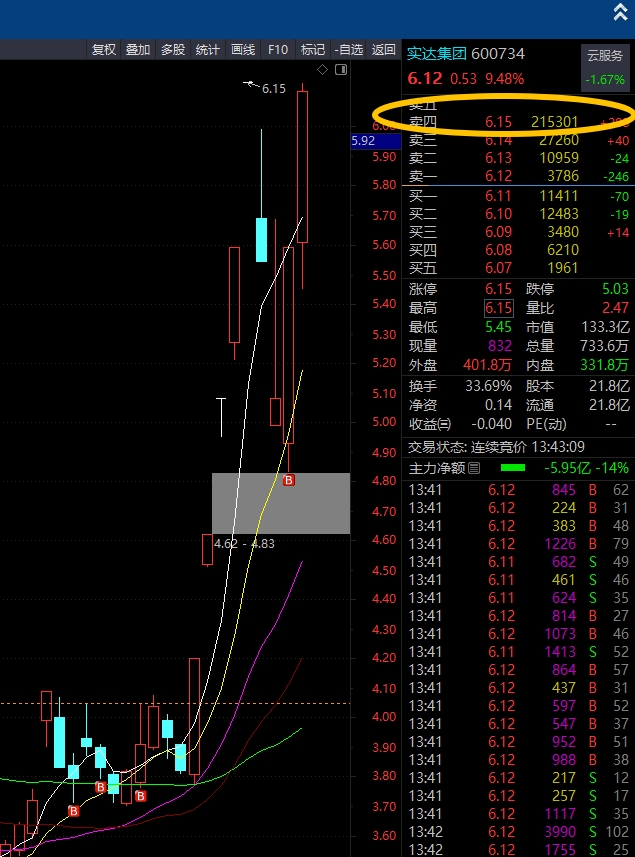 昨天13点43分的时候,本来有21万手卖单压单的,没一两分钟突然就拉涨停了。仔细