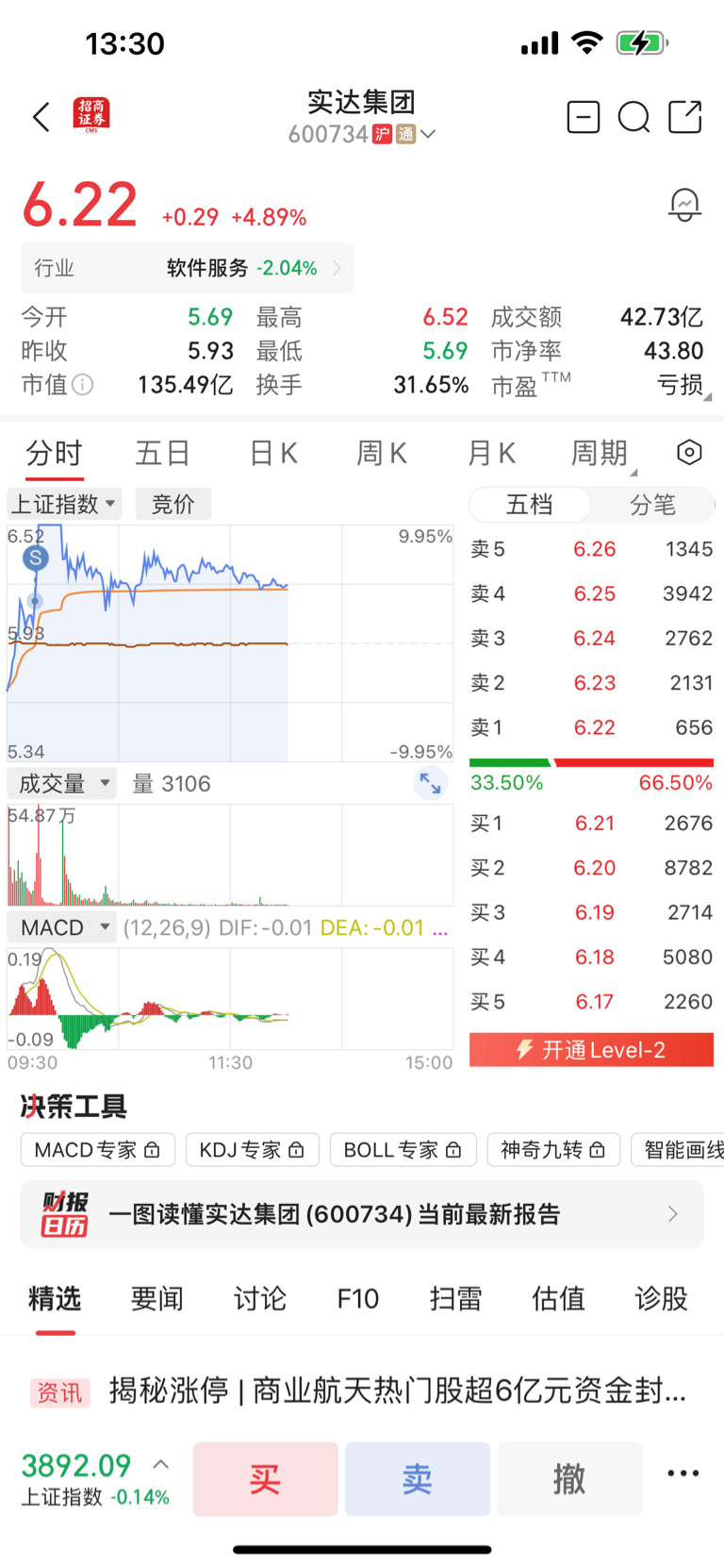 $实达集团(SH600734)$ 晚一分钟就完美了