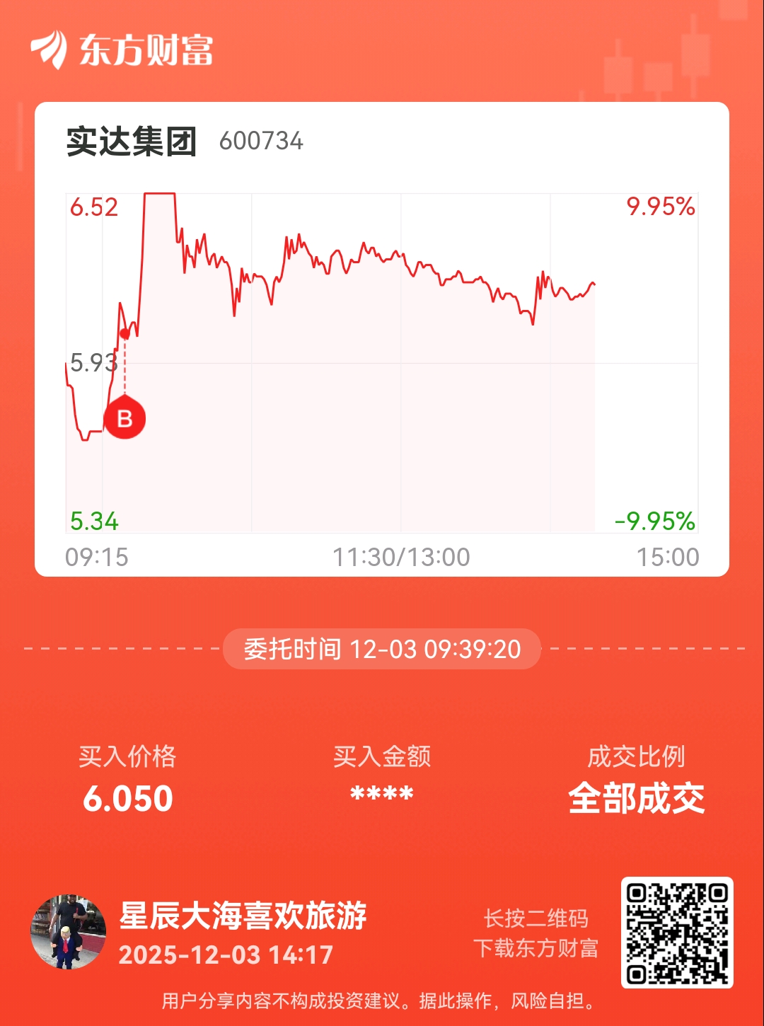 $实达集团(SH600734)$ 这走势,我感觉明天我这价格都不能安然离开