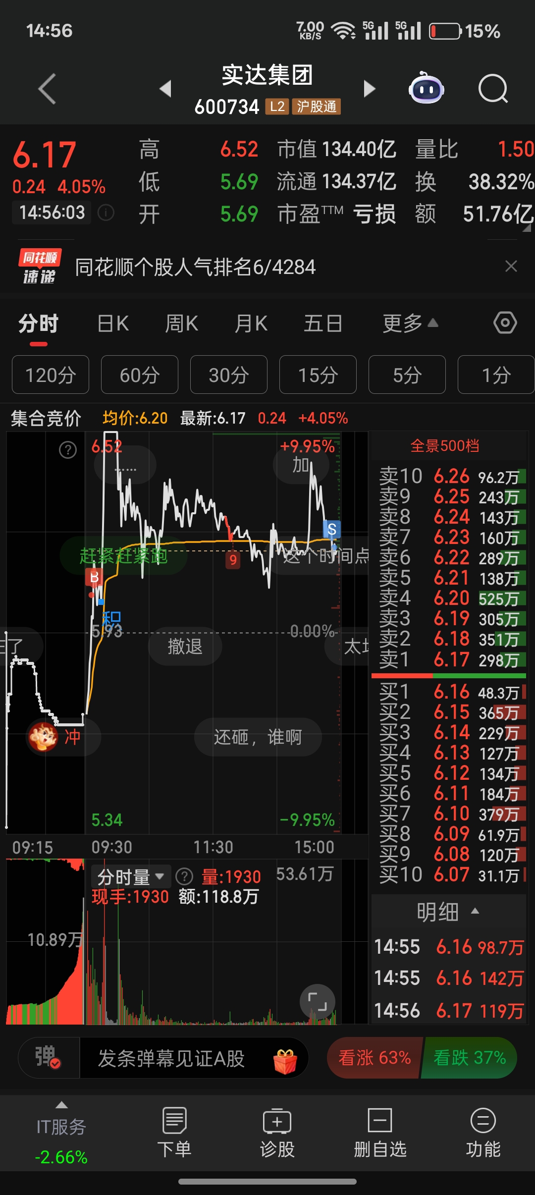 $实达集团(SH600734)$ 垃圾,最后不封板走人