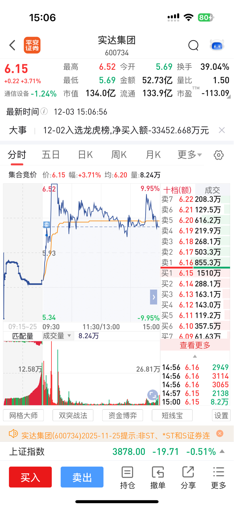 $实达集团(SH600734)$ 哎 兄弟们一人给我一巴掌