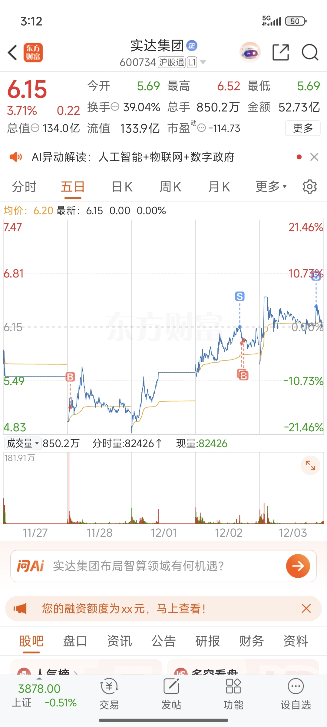 $实达集团(SH600734)$ 感谢实达~过两天再来~