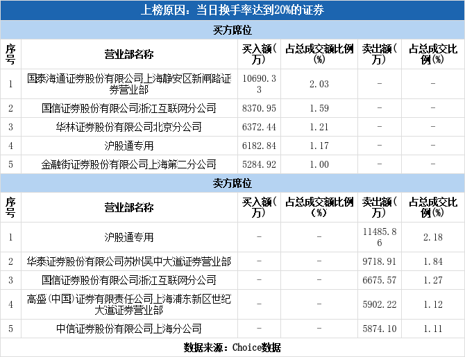 沪股通现身龙虎榜,实达集团换手率达39.04%(12-03)