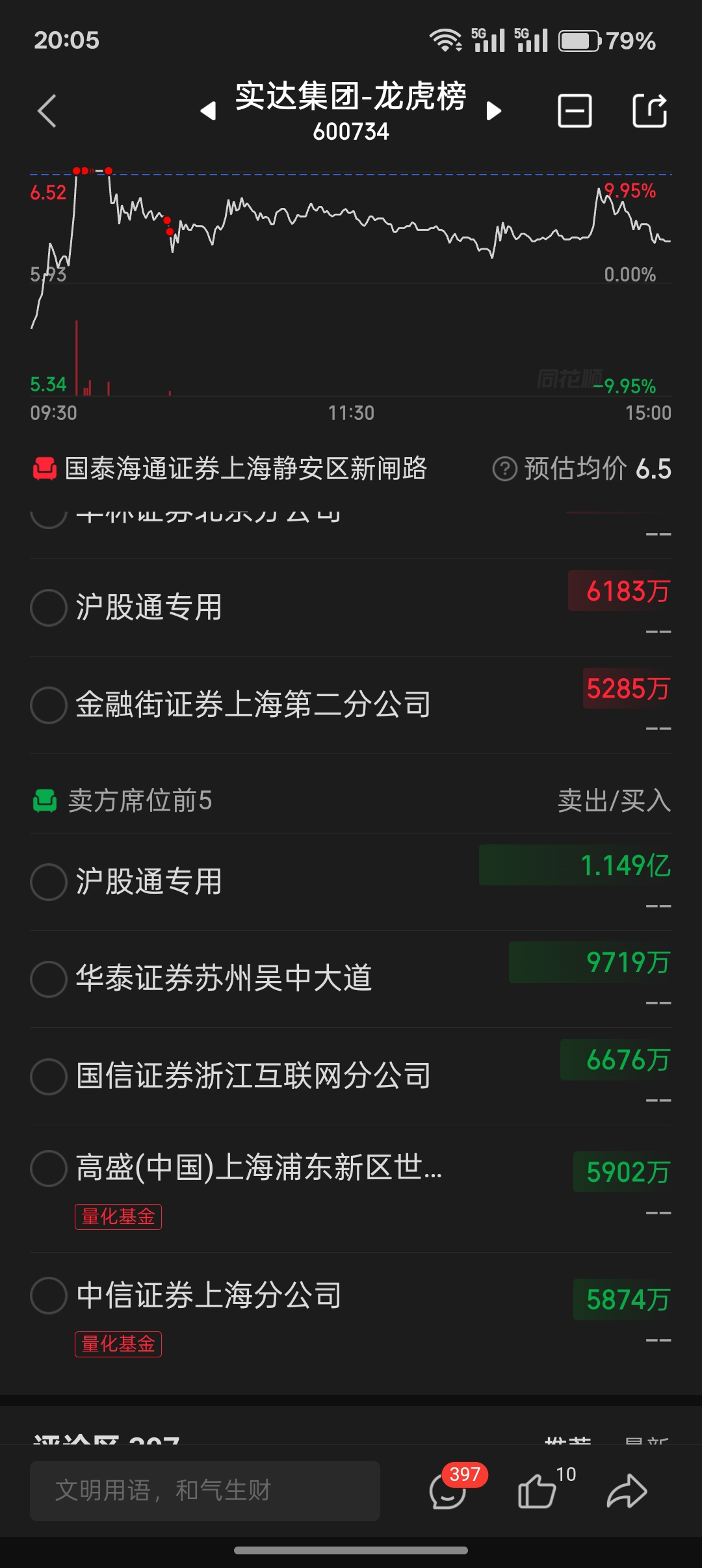 $实达集团(SH600734)$ 这苏州吴中天天砸盘,而且今天还没卖完,根据近几天的龙虎榜算,还剩大概七千多万底仓没出完,这CS明天又会砸。