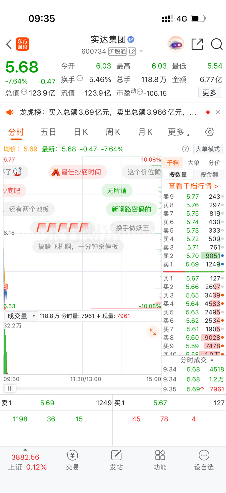 昨天喷我的人来!,昨天卖出实达有盈利20个点,卖了去山子,今天实达跌停价,捞回来